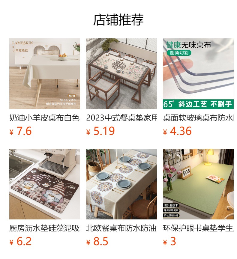 | 130*130 (suitable for round table/eight-immortal table) | CN¥ 17.28 | 12996 piece available |