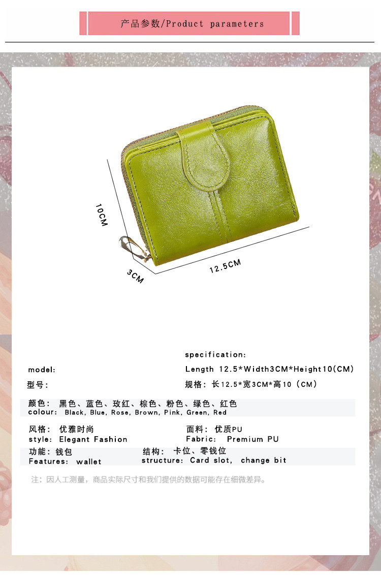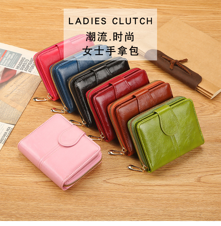 2023 New Style Ladies Short Card Holder Student Cute Fresh Little Fresh Zipper Handbag Soft Leather Clutch Two-Fold Wallet