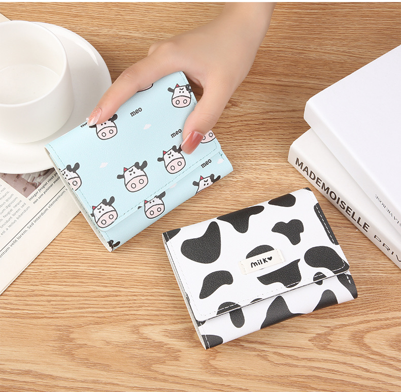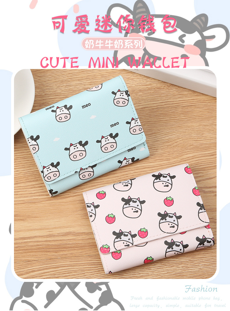 New style multi-card short-length small wallet for women mini wallet three-fold wallet Korean and Japanese version dairy cow card bag for women