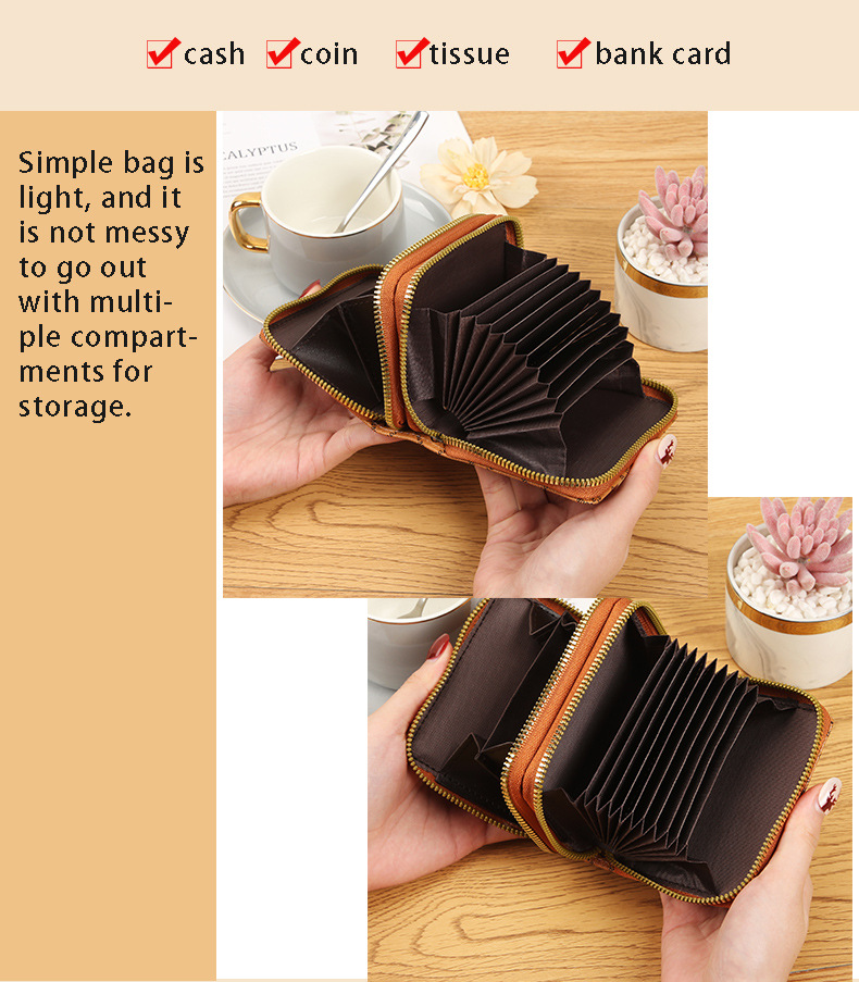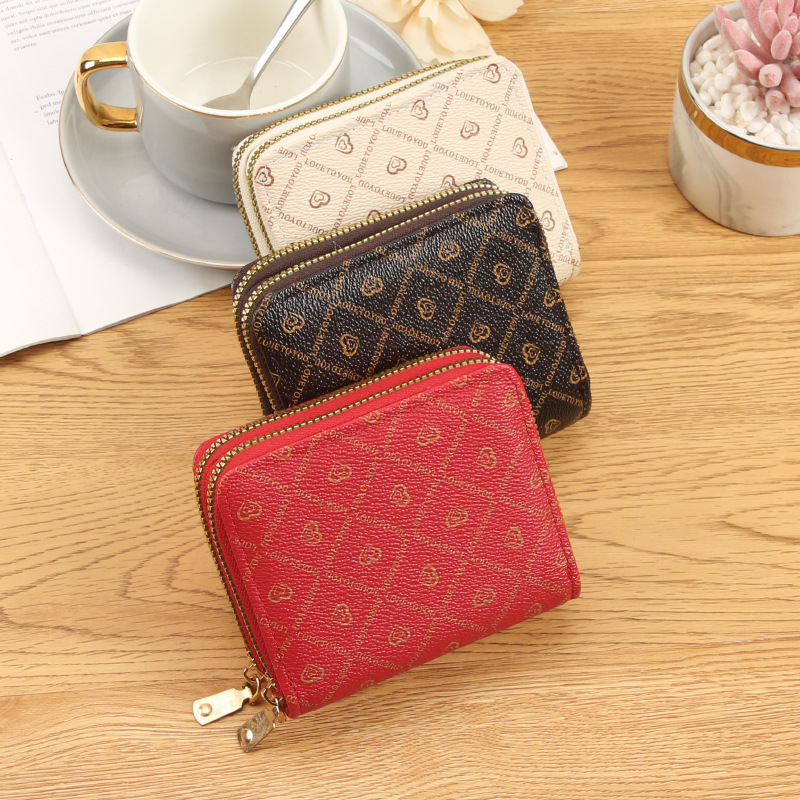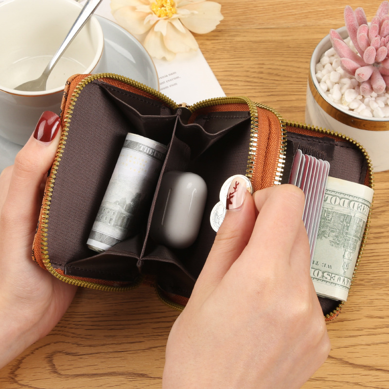Double zipper card holder pure color access card case zero wallet lady high-end feeling wallet large capacity card position source factory