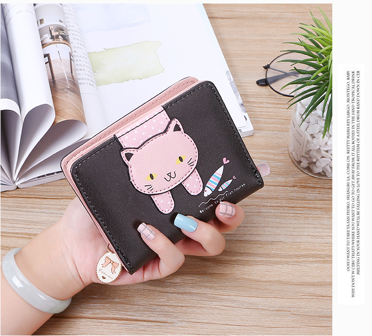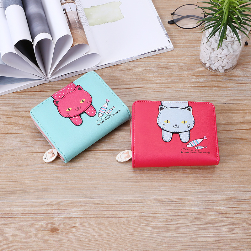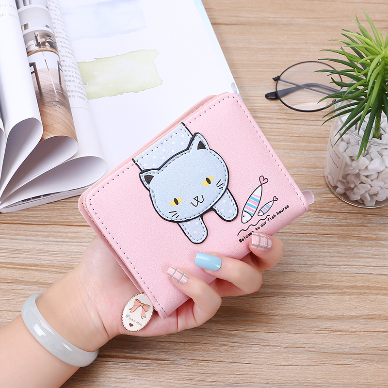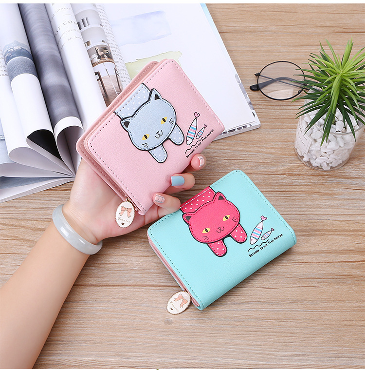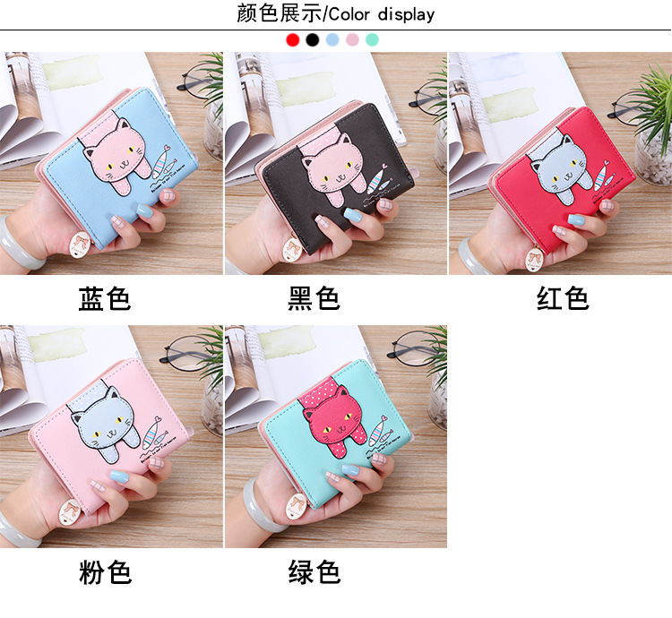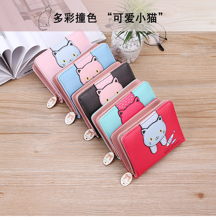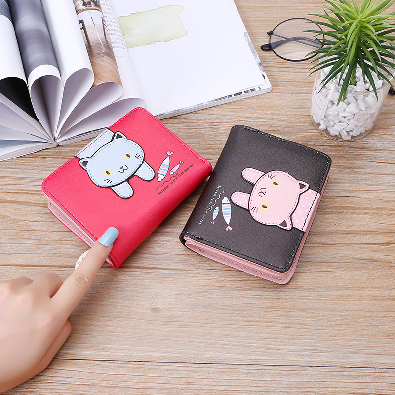 2023 New Style Women's Wallets Short and Cute with Zipper Cartoon Cute Cat Student Printed Ladies Coin Purses Wholesales