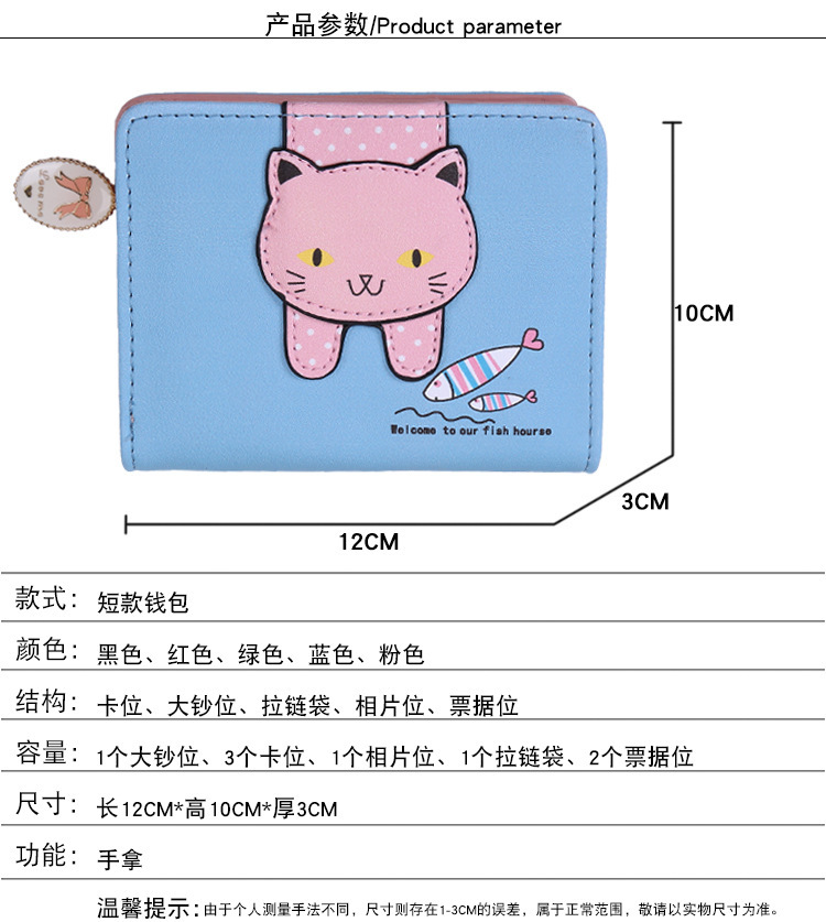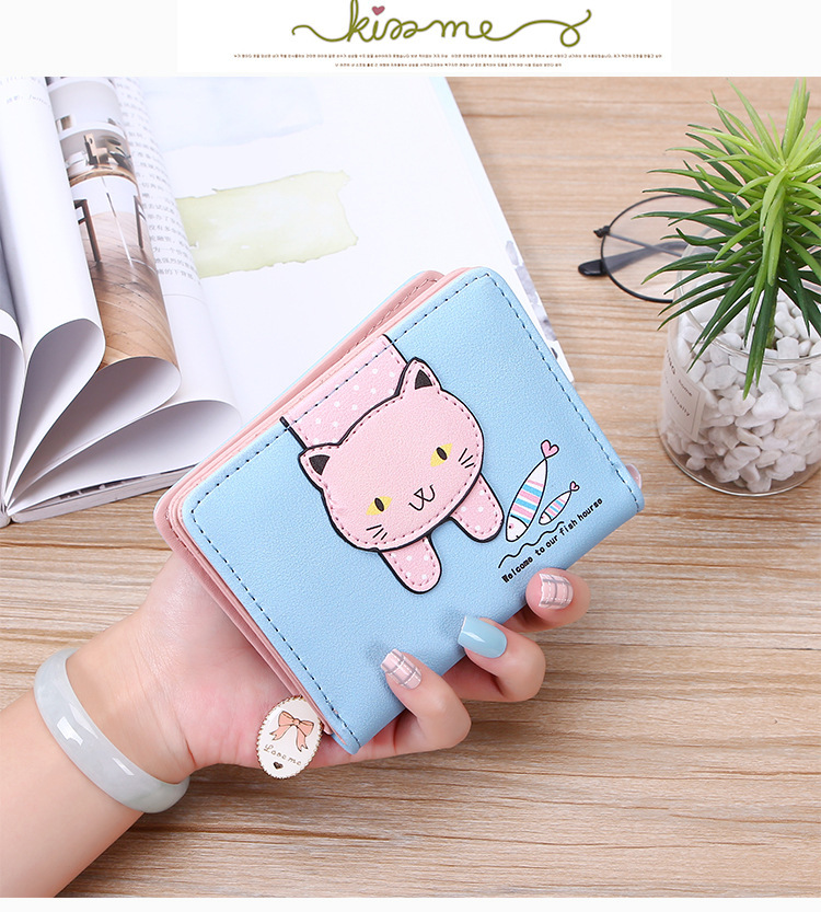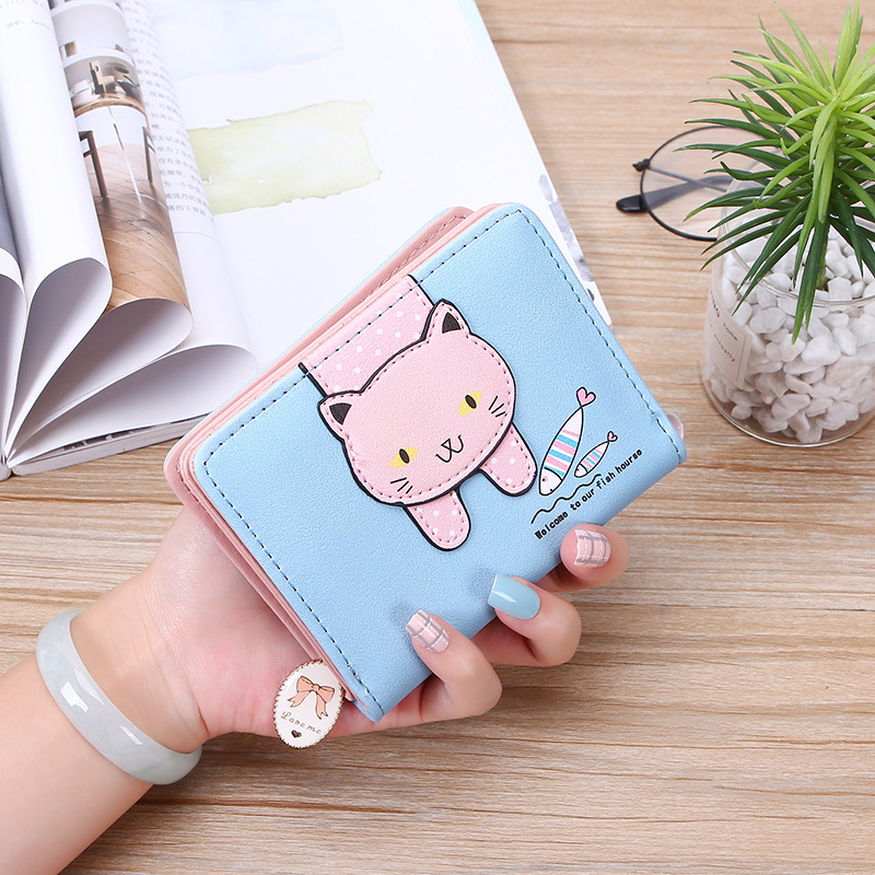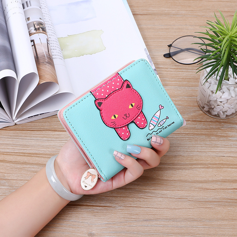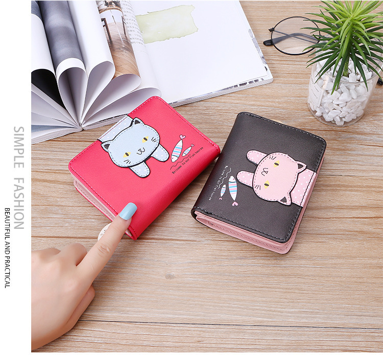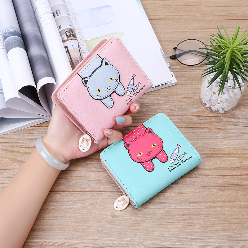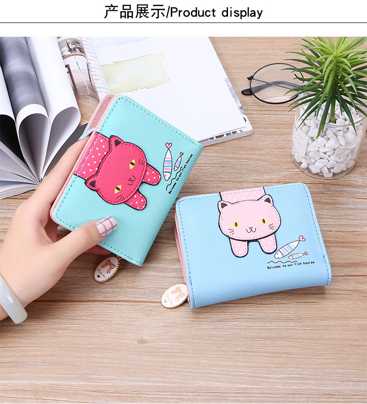 2023 New Style Women's Wallets Short and Cute with Zipper Cartoon Cute Cat Student Printed Ladies Coin Purses Wholesales