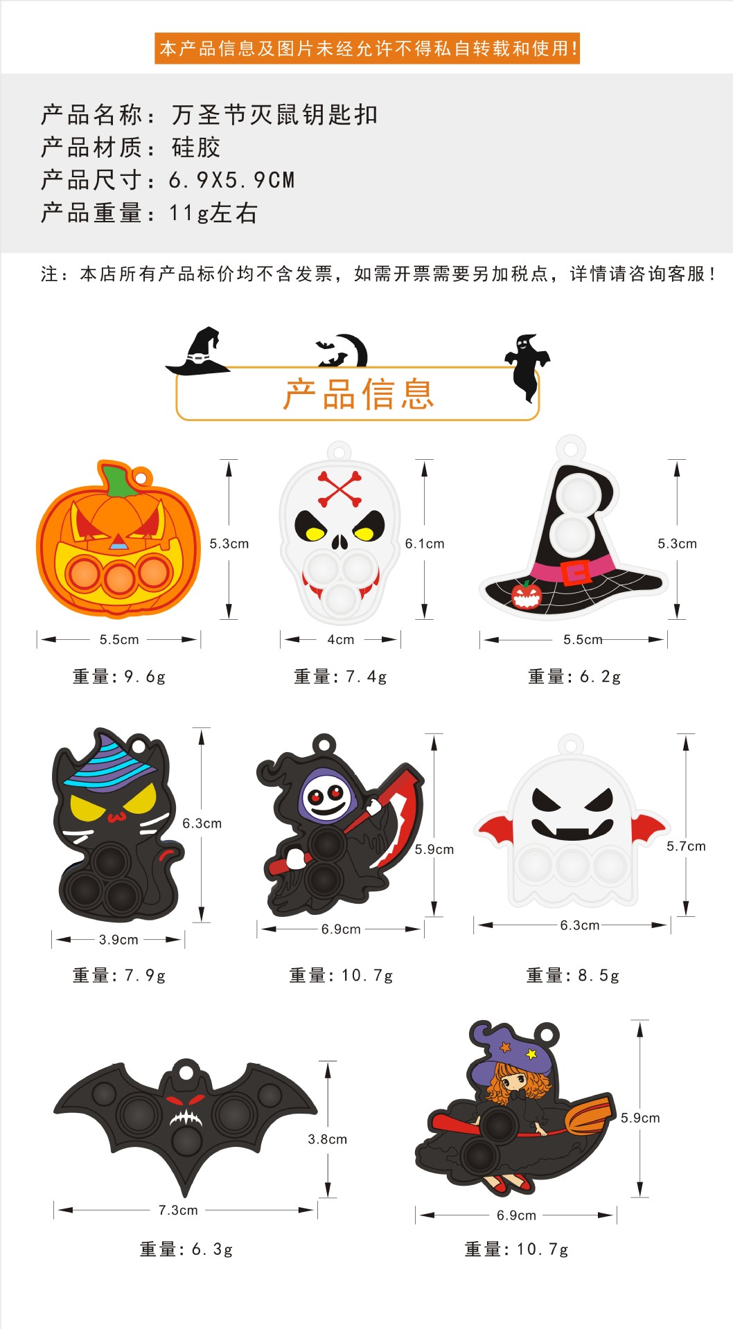 halloween mouse killer keychain (mixed color, keychain not worn on silicone, will be matched in express)