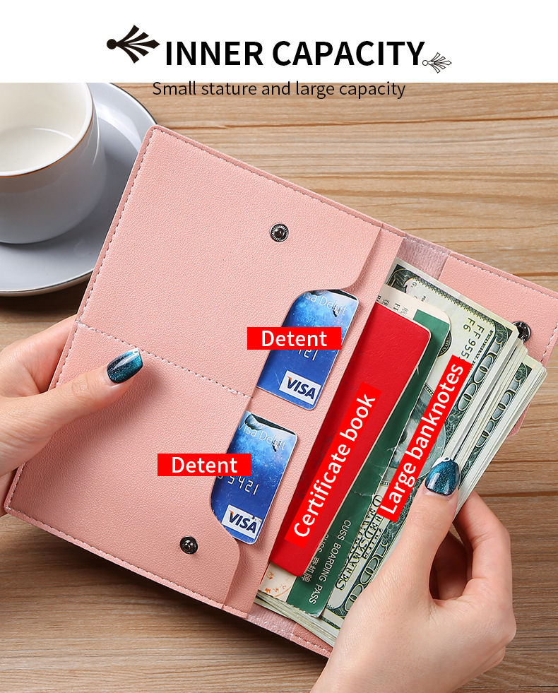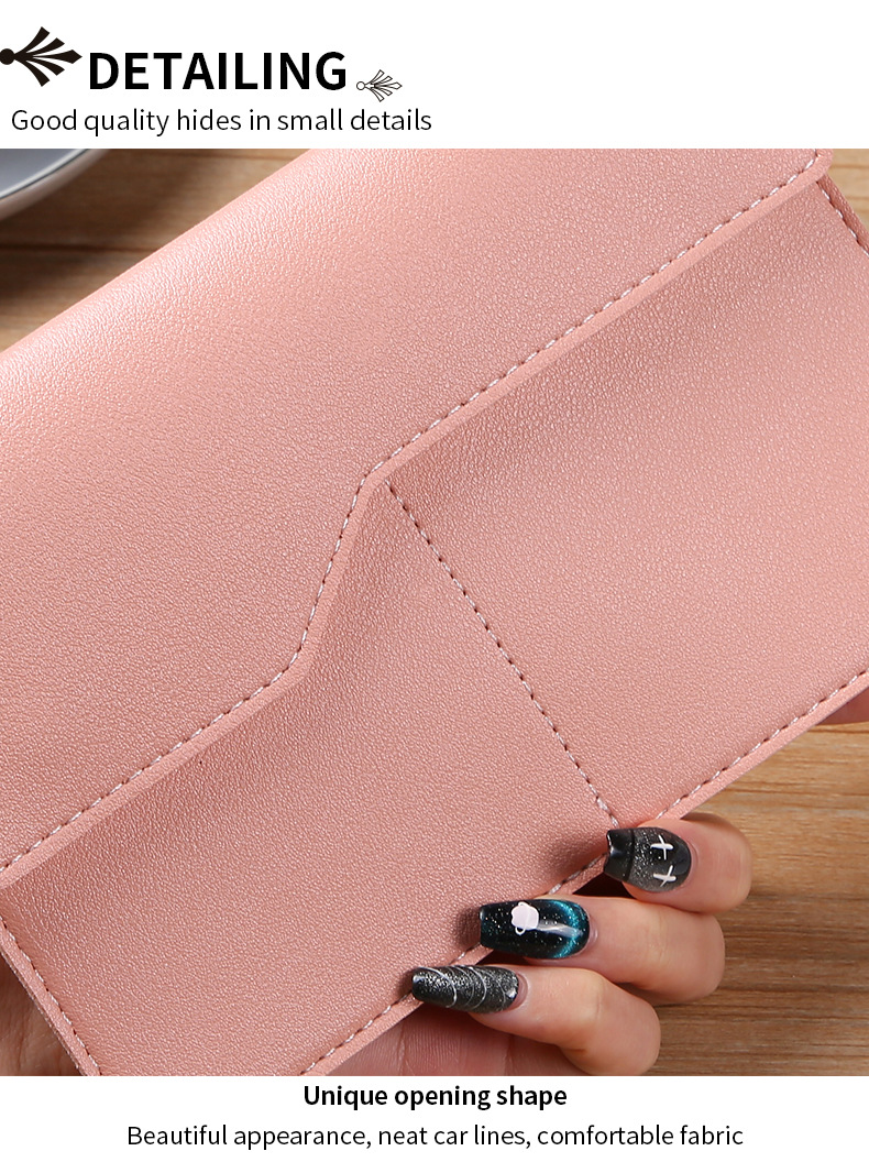 New women's wallet, simple and fashion, with multiple card slots, a large capacity for phones and passports, and a pure color design.