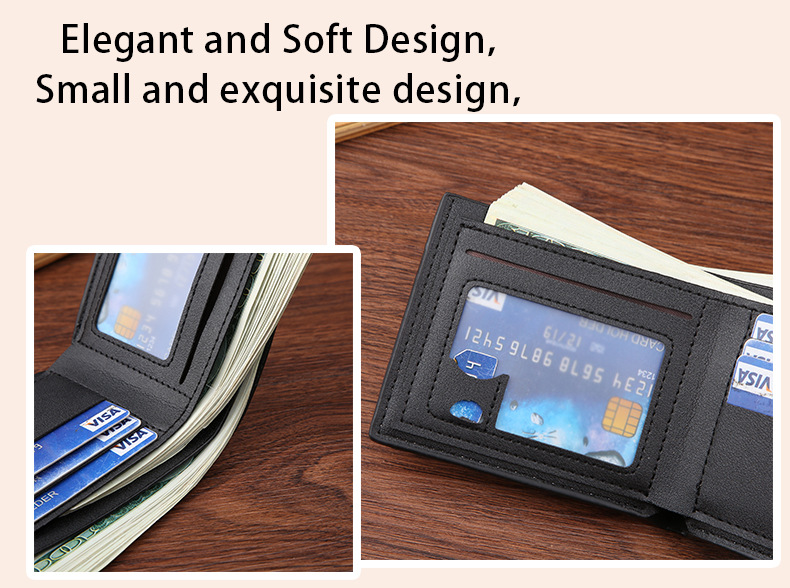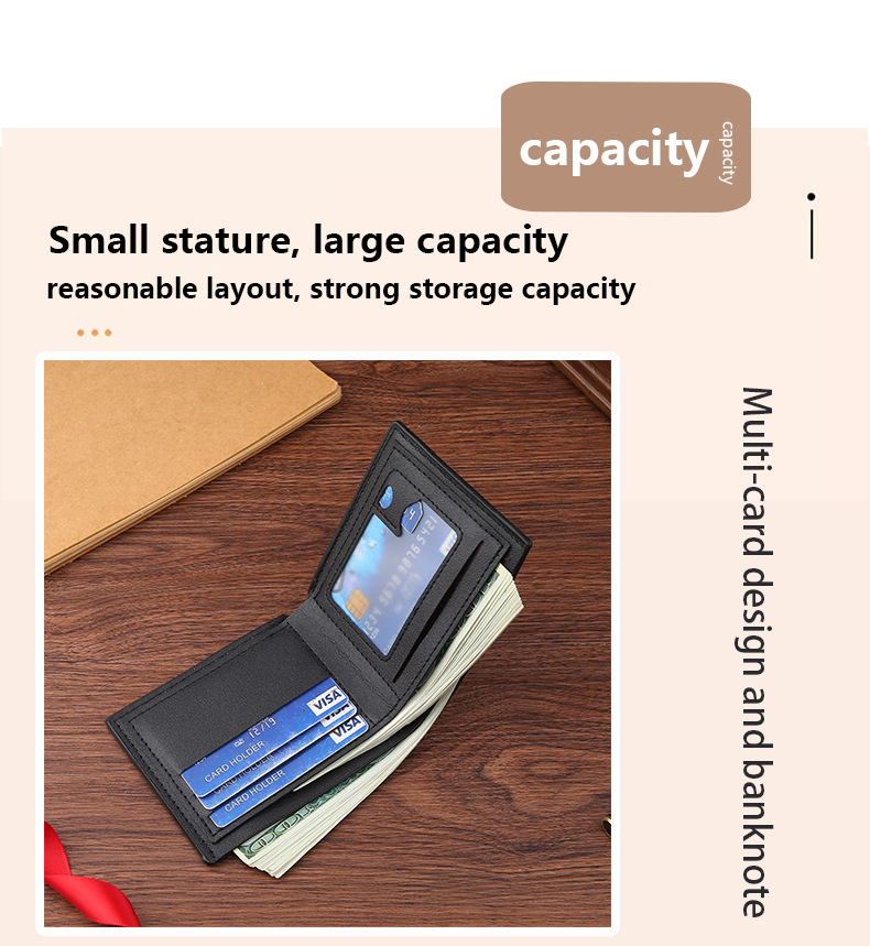 New men's wallet with multiple card slots, fashion and casual, thin design, two-fold horizontal, soft leather wallet for young men.