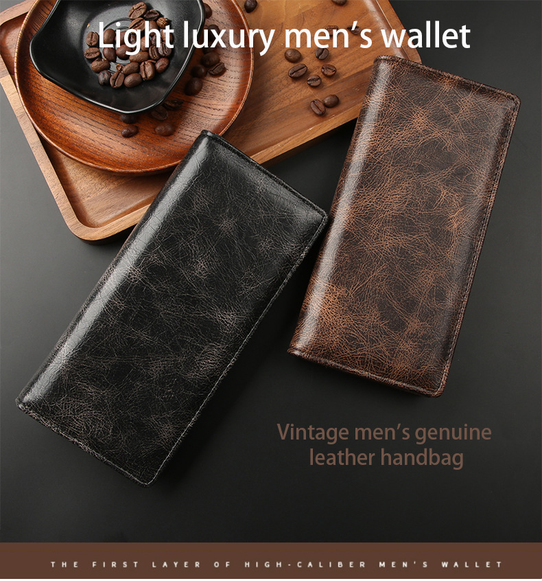 Manufacturer Direct Sale Men's Long-length Wallet with Multiple Card Slots for Business Purposes, Leather Card Holder with Retro European and American Style, Wholesale
