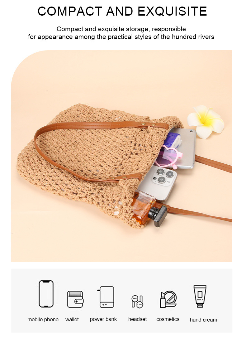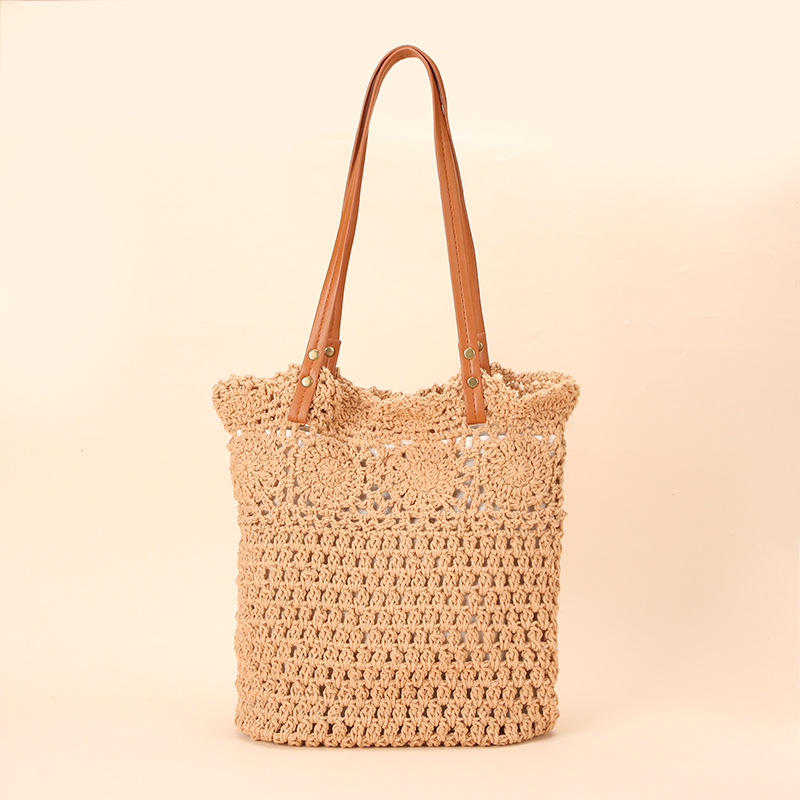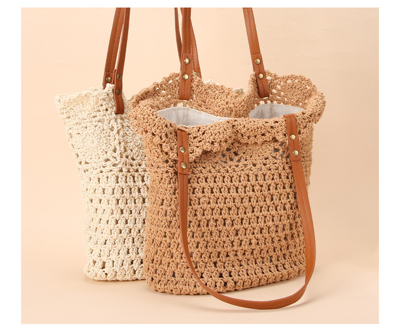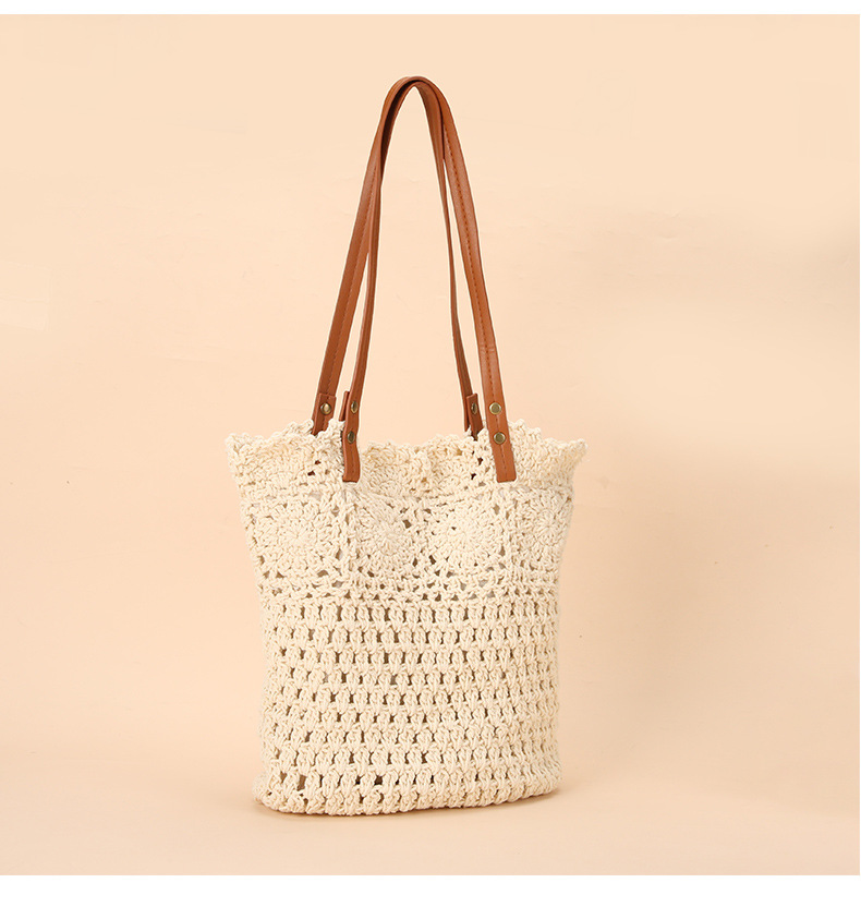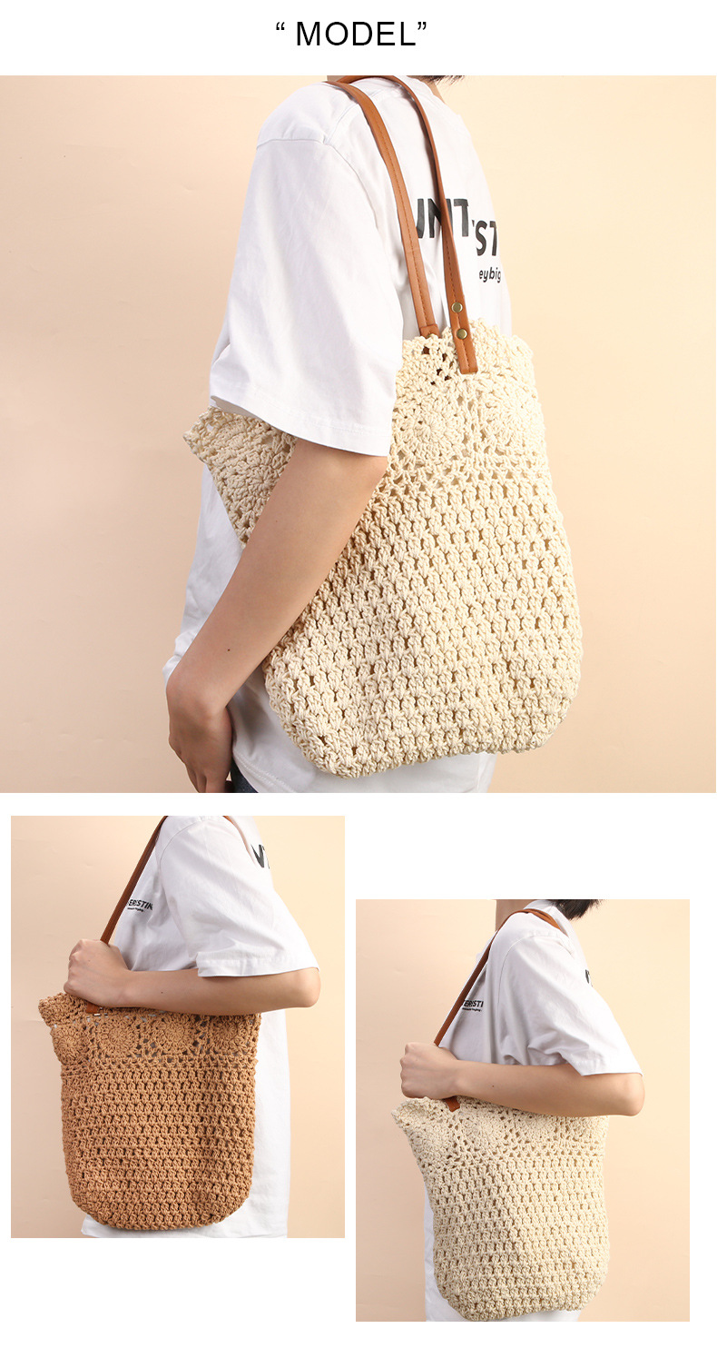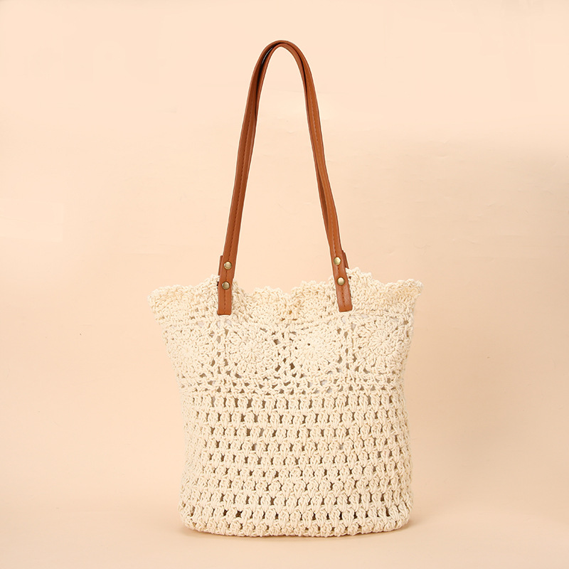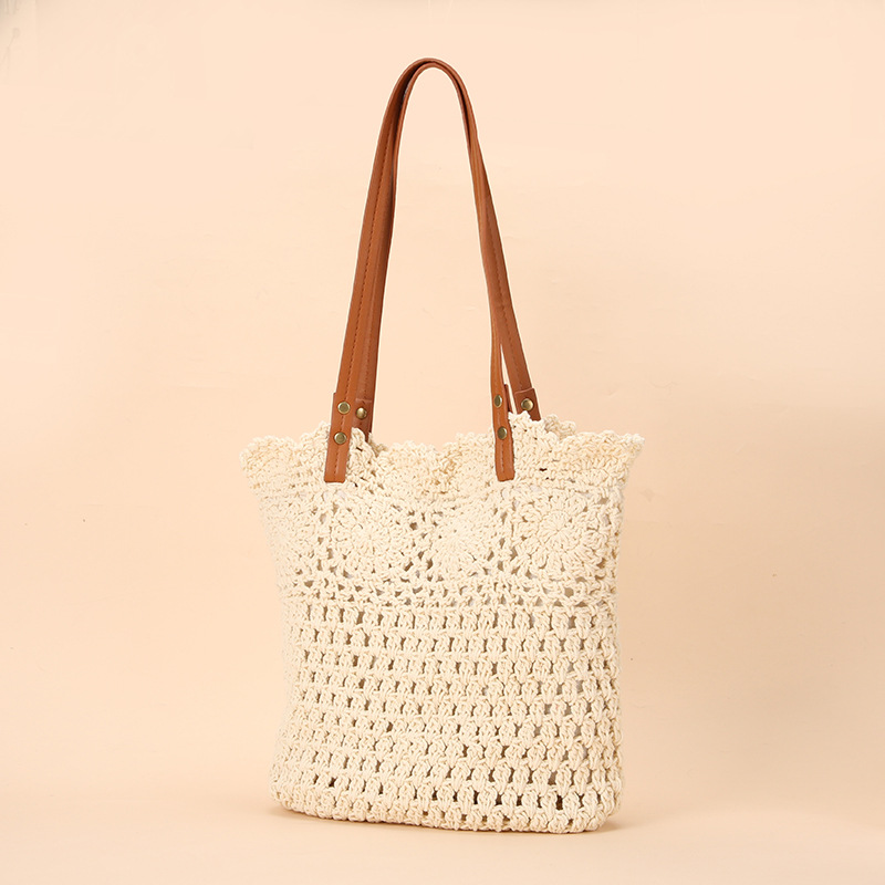 Wholesale stock of 100% cotton rope knitting literary and artistic handbags, Korean-style tote bags, women's bags, retro hook drawing knitting bags, custom