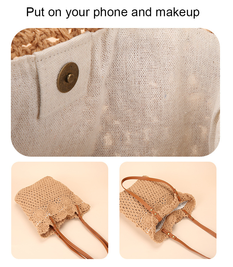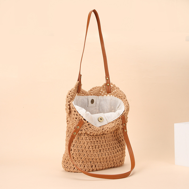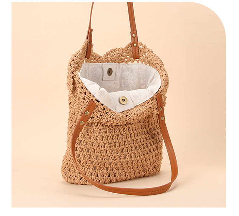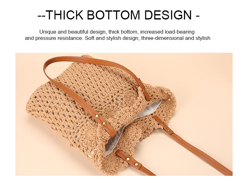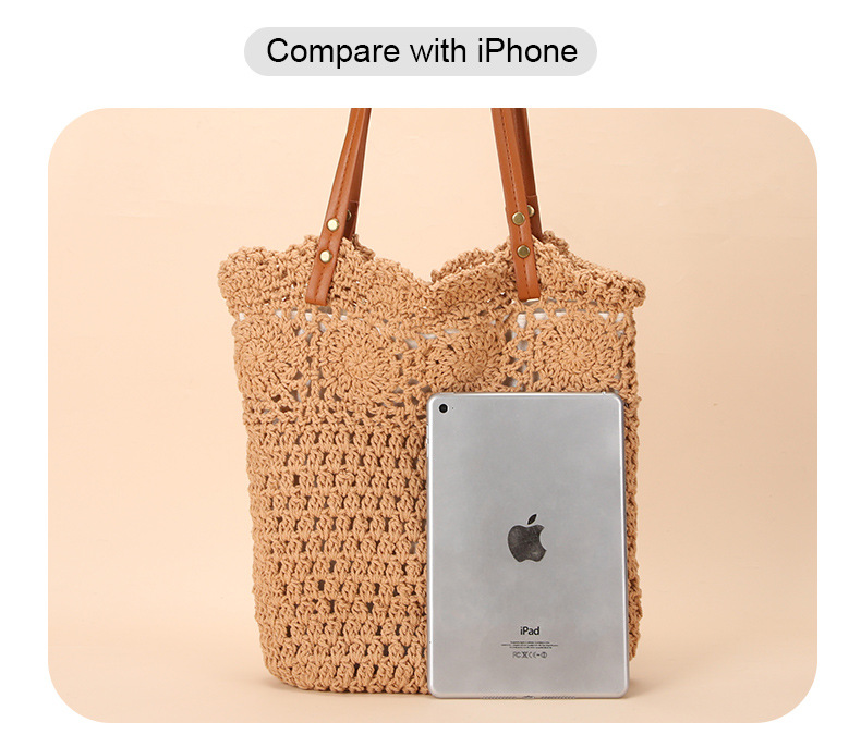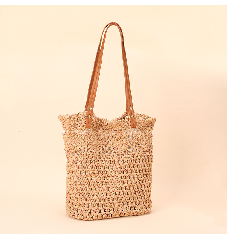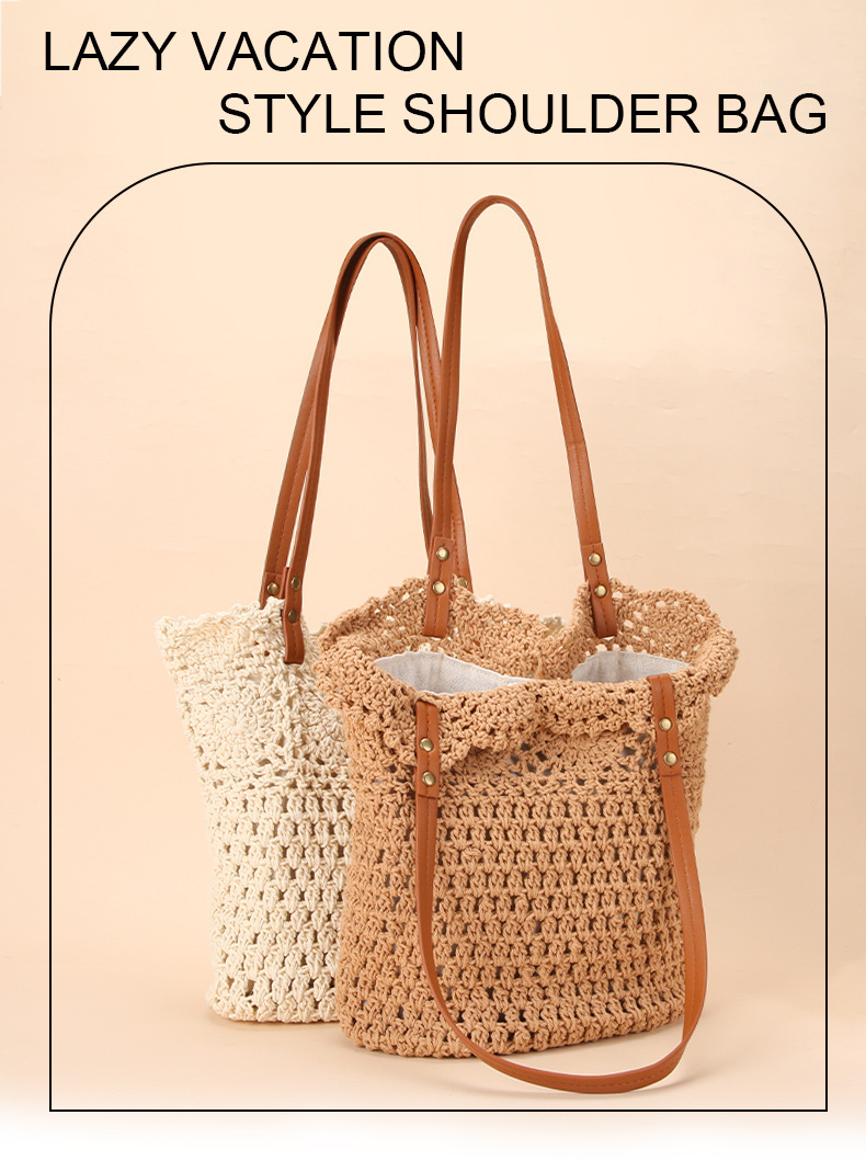 Wholesale stock of 100% cotton rope knitting literary and artistic handbags, Korean-style tote bags, women's bags, retro hook drawing knitting bags, custom