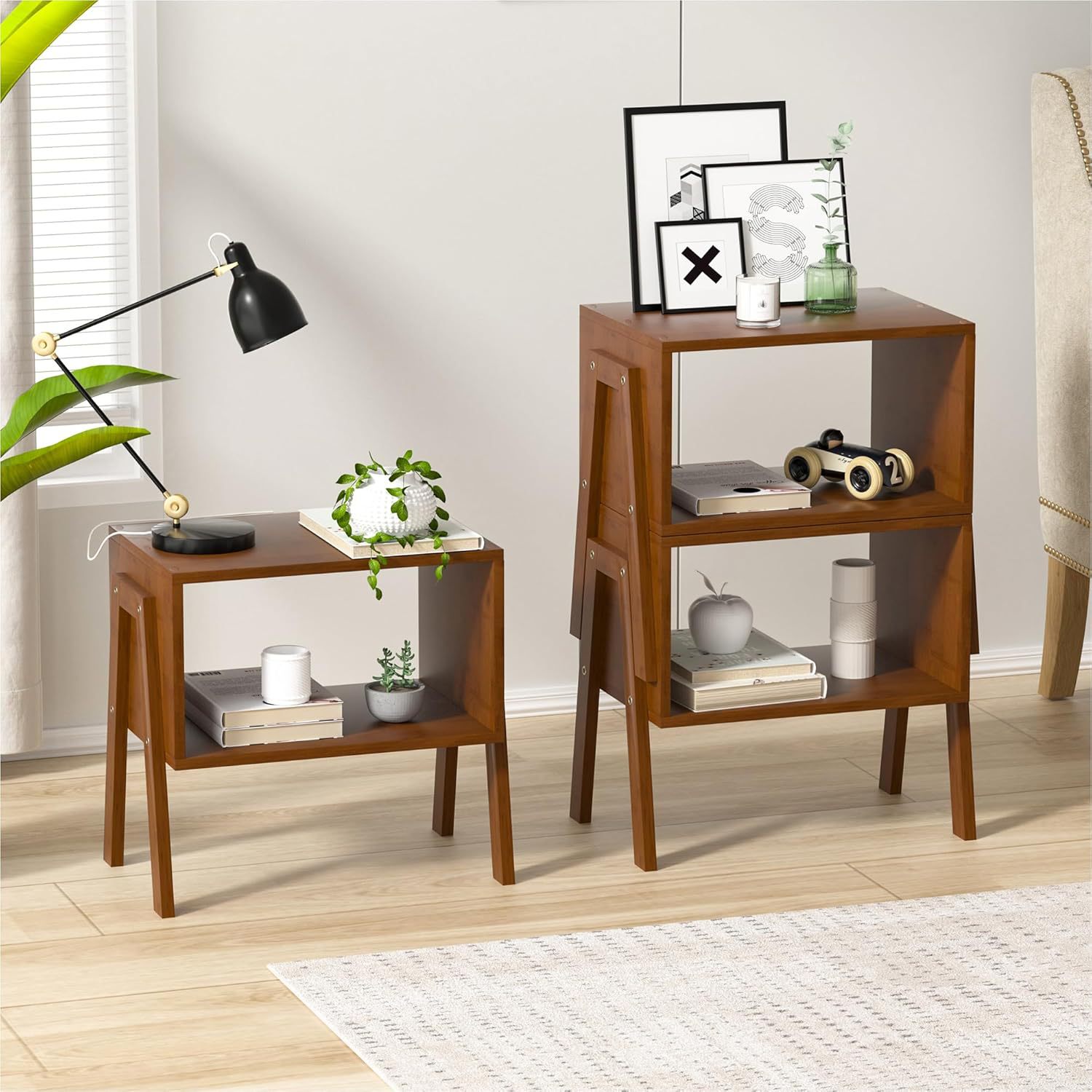 bamboo stackable coffee table wooden living room bedside table, bedroom storage bedside table home wooden storage cabinet