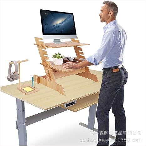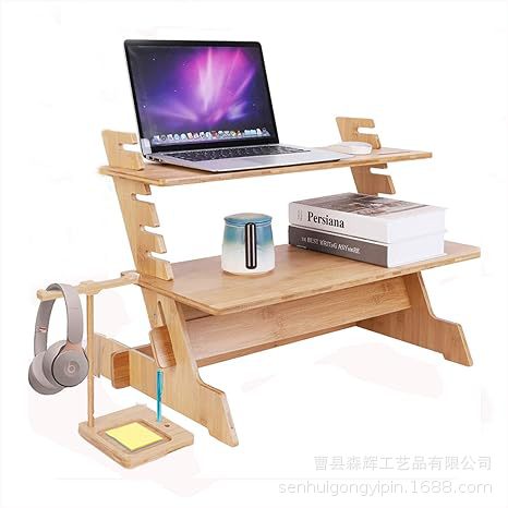 bamboo standing desktop display adjustable height vertical desktop laptop stand bamboo wood mobile phone stand