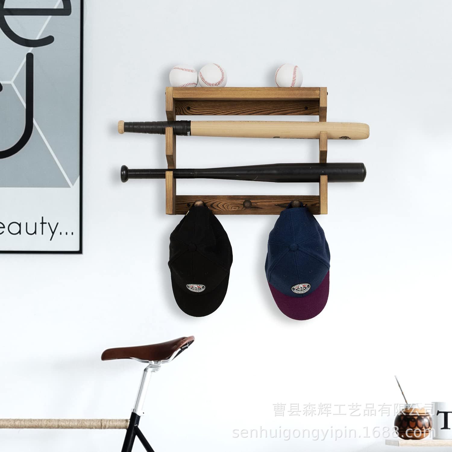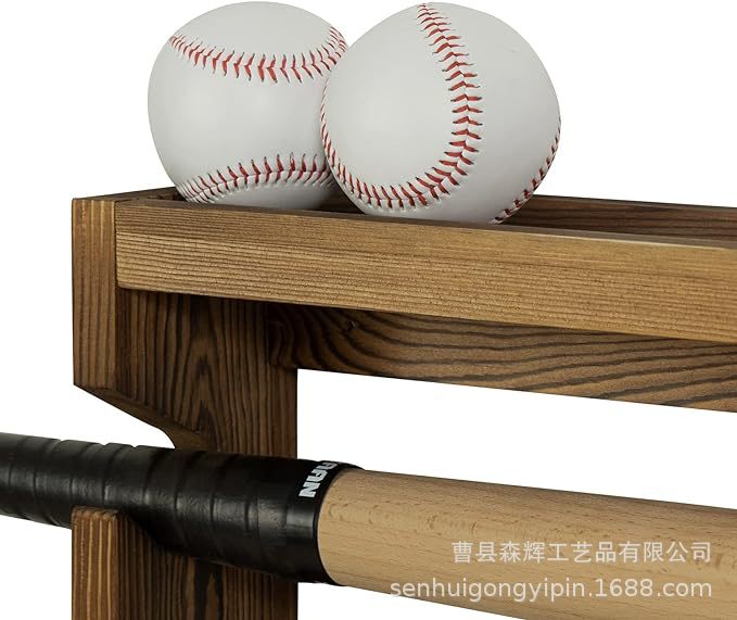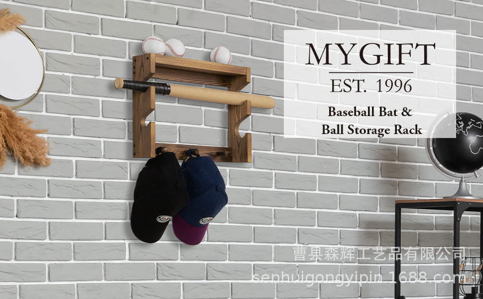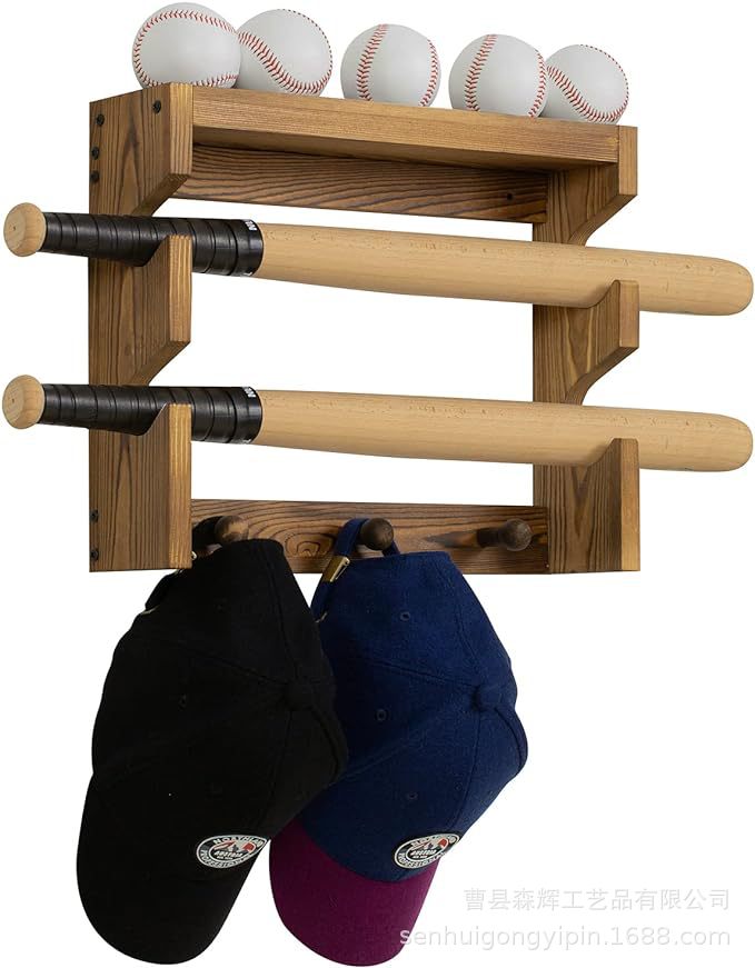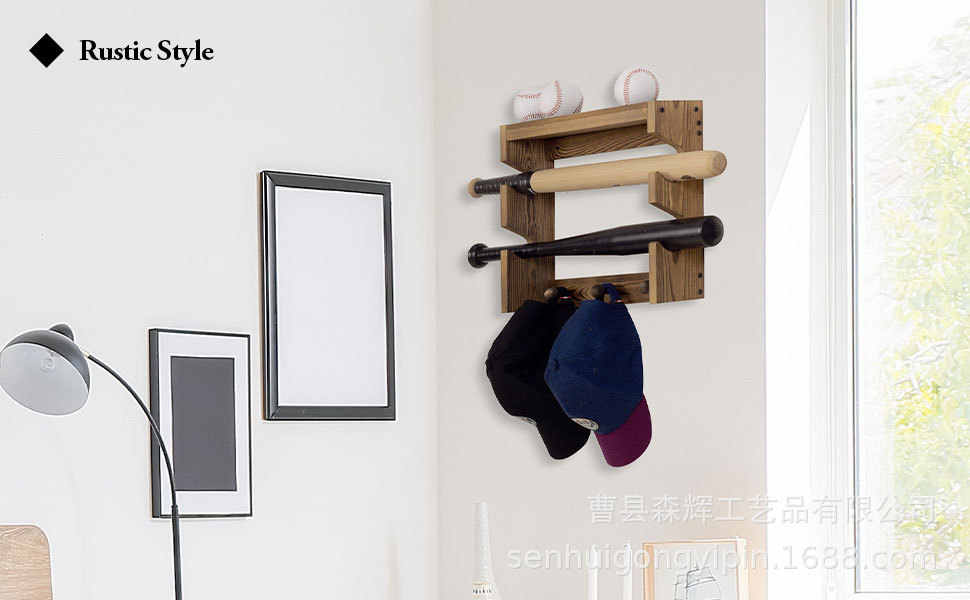 wooden wall-mounted country burning wood baseball bat accessories rack with baseball display stand solid wood hanging baseball cap hook