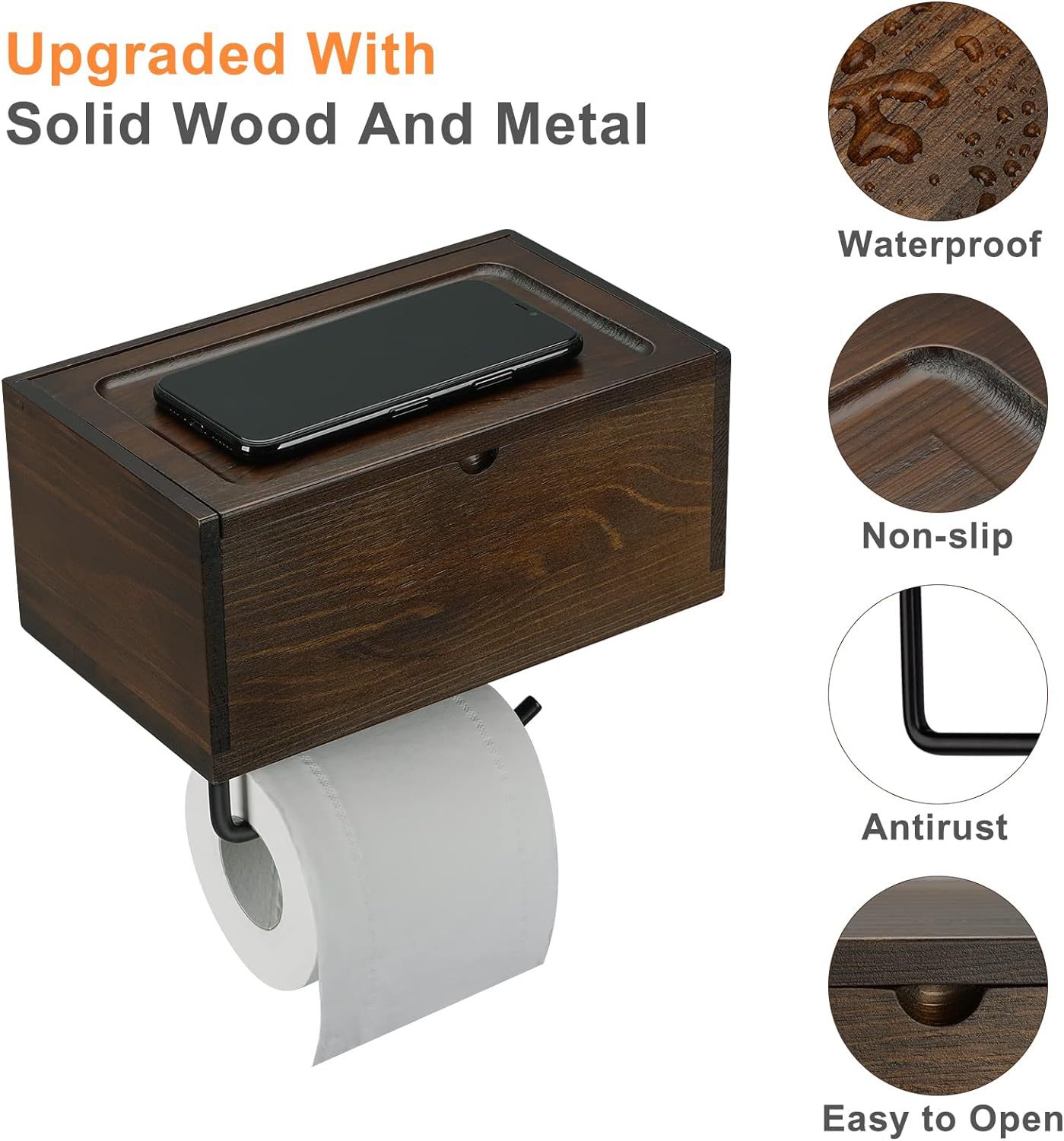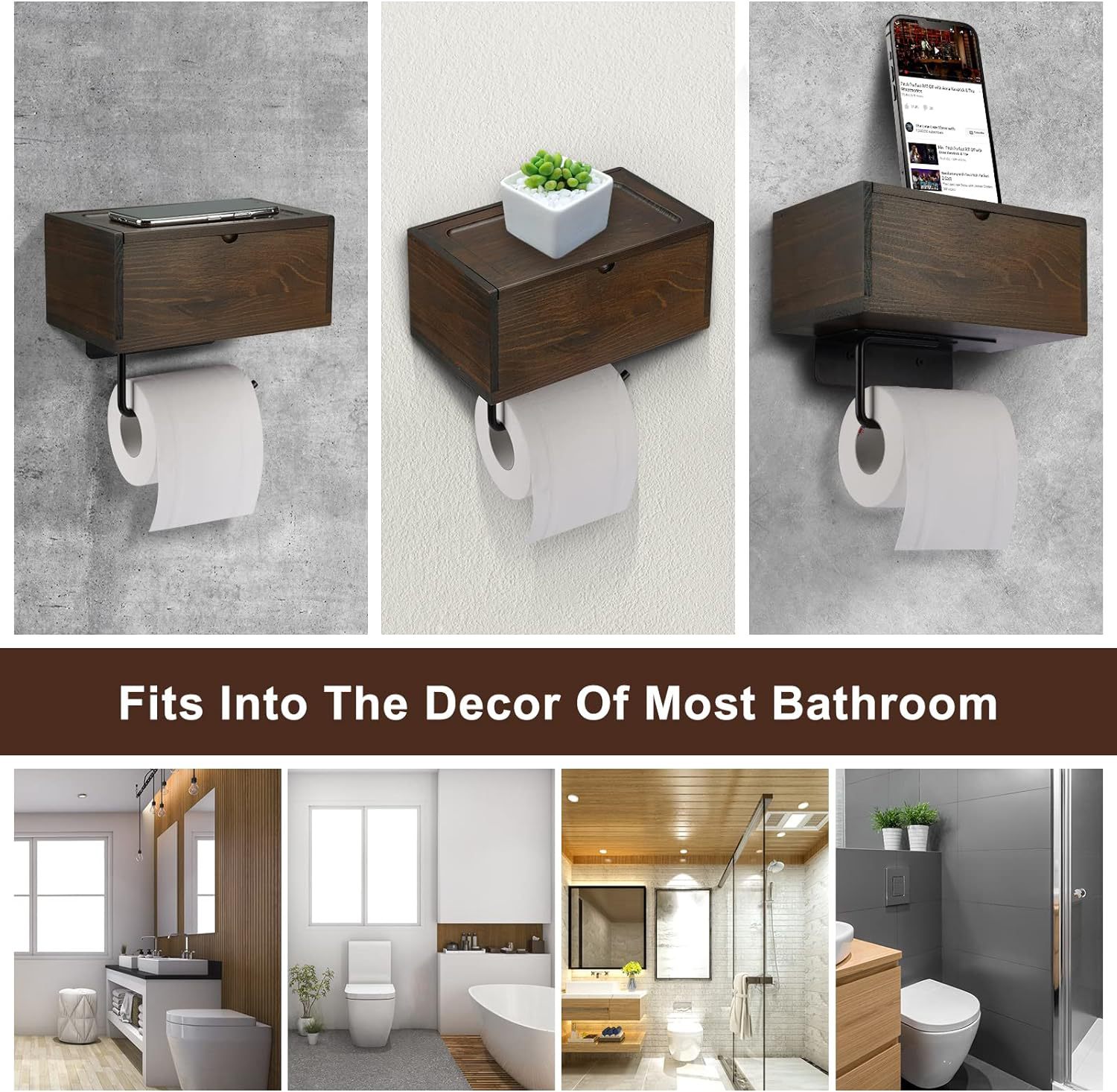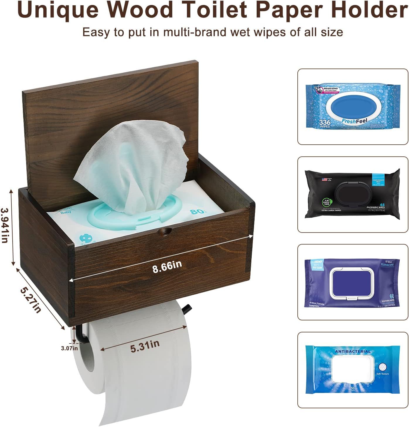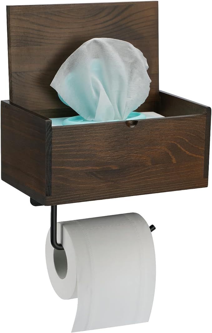 bathroom toilet paper holder wooden wall-mounted bathroom storage rack with wet tissue dispenser tissue box