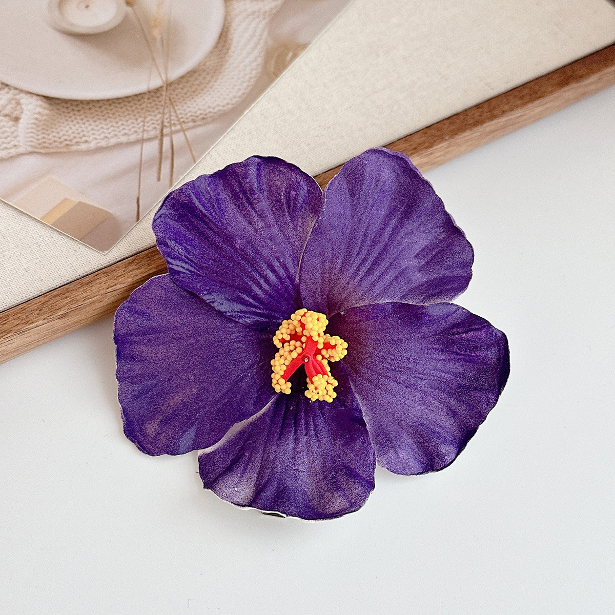 purple hibiscus rosa-sinensis barrettes
