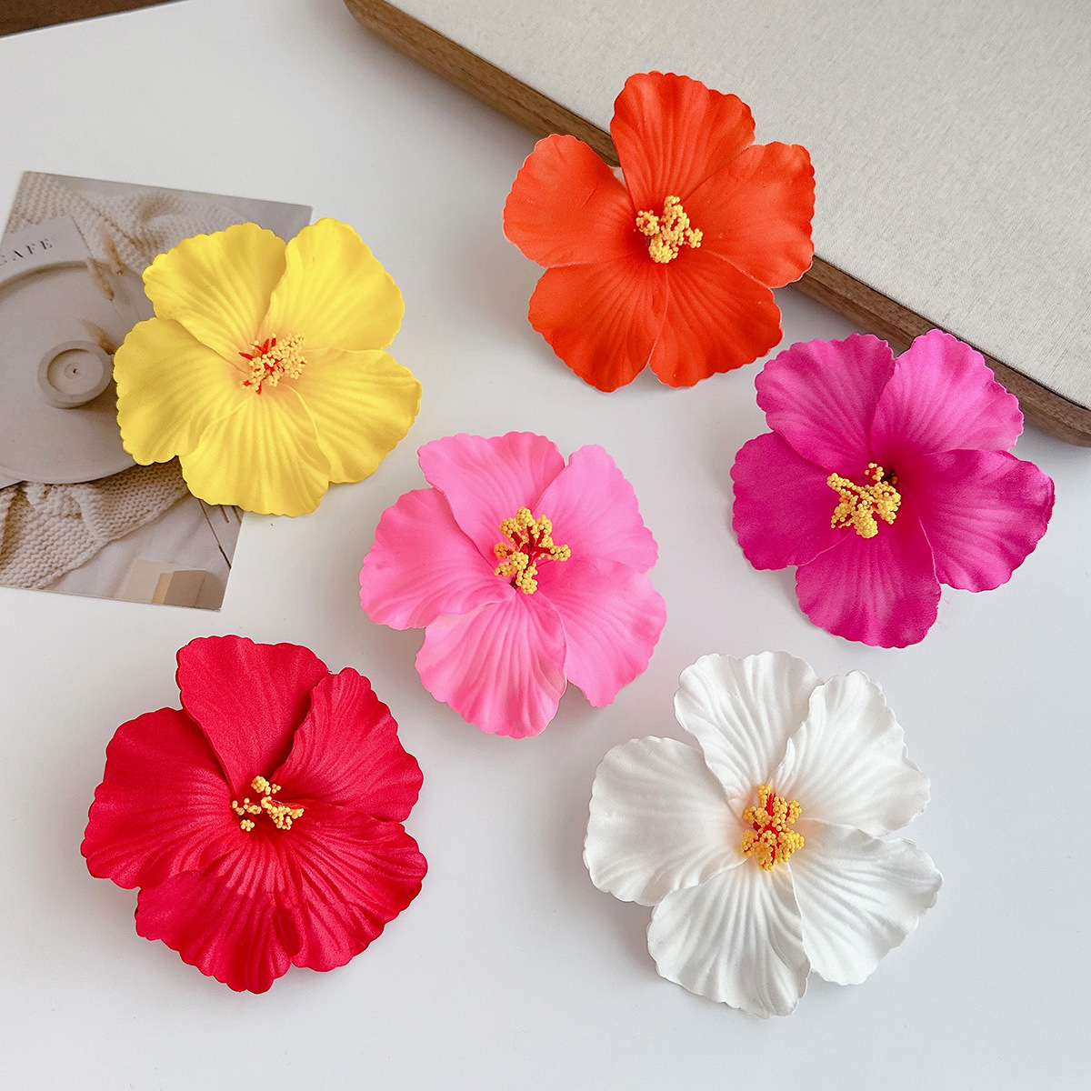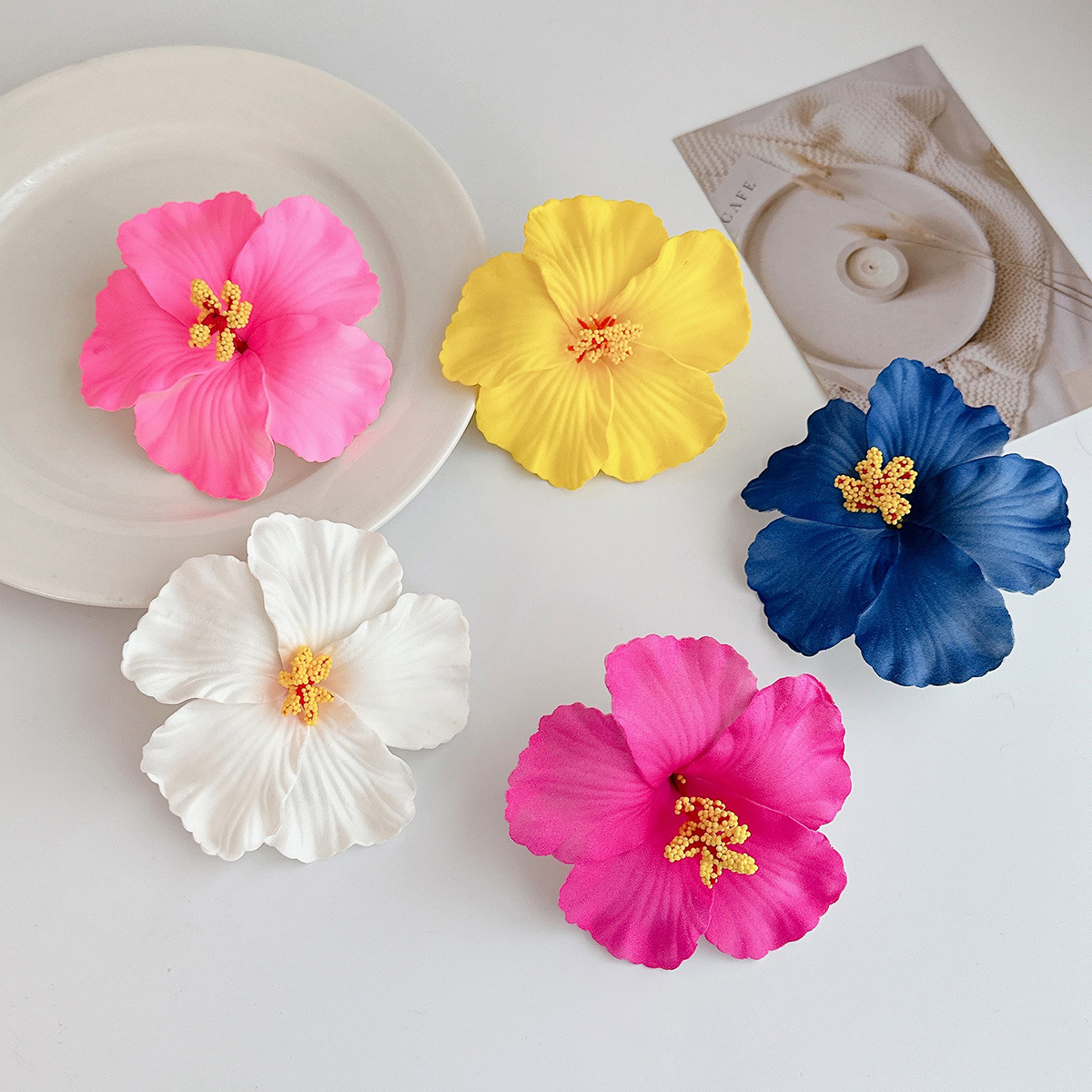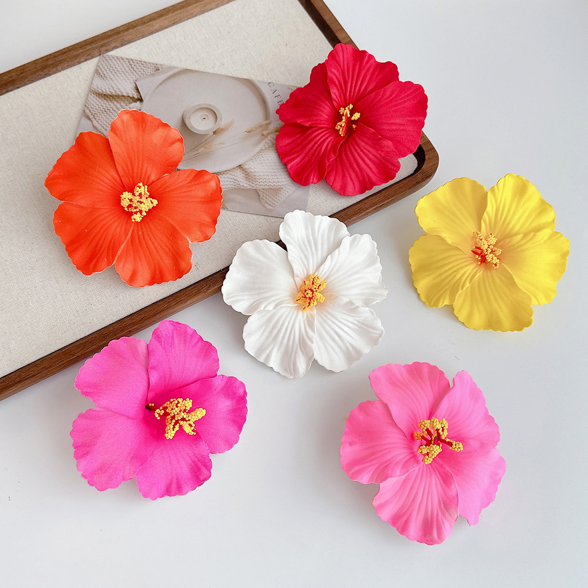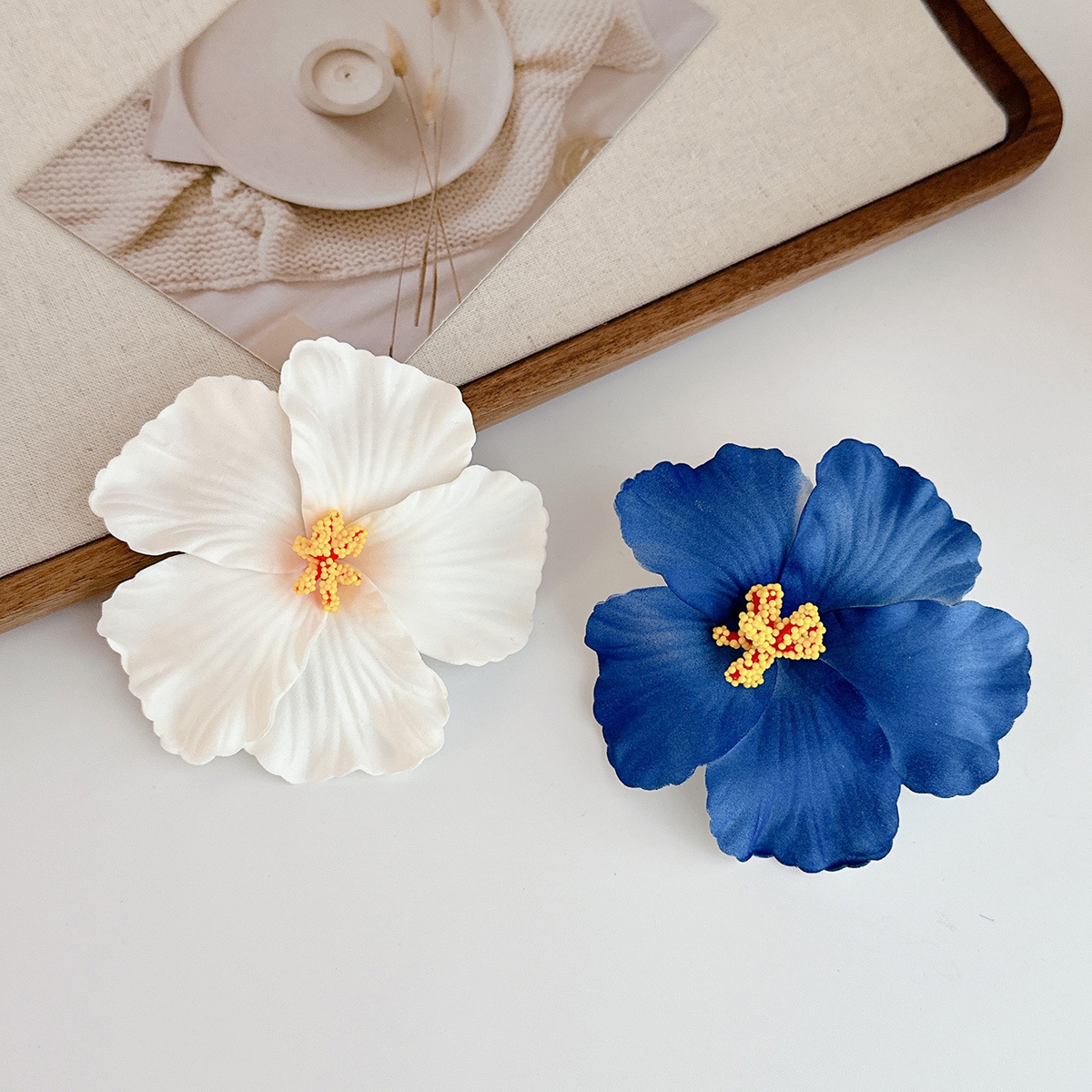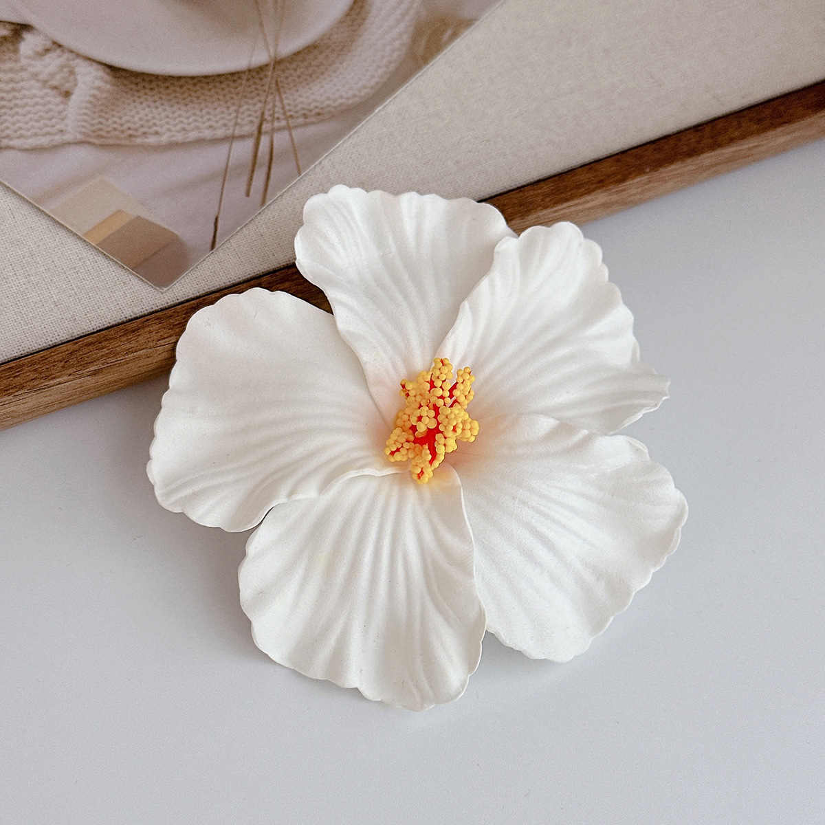 white hibiscus rosa-sinensis barrettes
