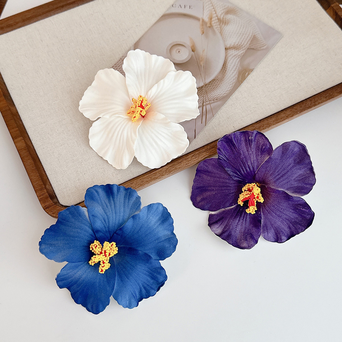blue hibiscus rosa-sinensis barrettes
