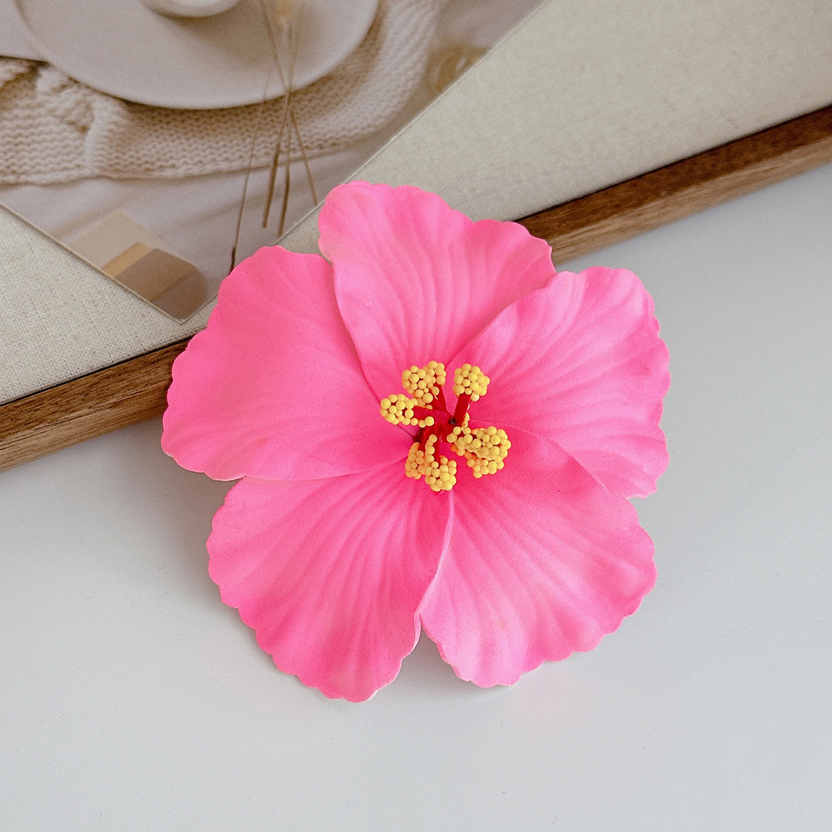 pink hibiscus rosa-sinensis barrettes