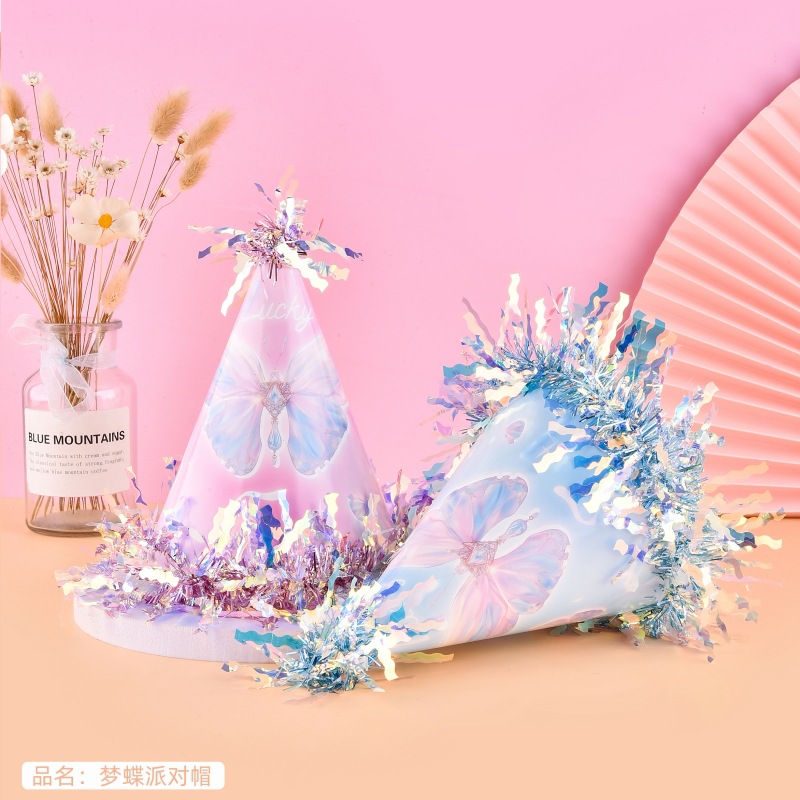 pompom hat fur ball xingx surrounding border birthday hat adult baby cake party decoration frosted pearlescent pointed hat