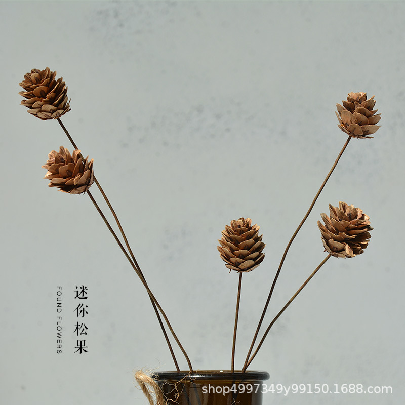 5 deciduous mini pine cones, 60cm long wire rod