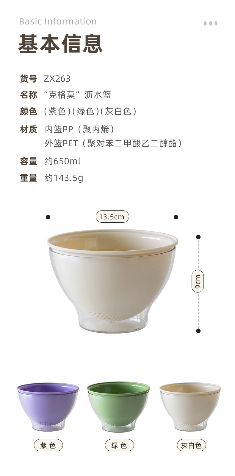 Outer basket: PET (Polyethylene terephthalate)