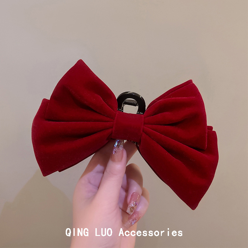 gold standard wine red velvet bow claw clip