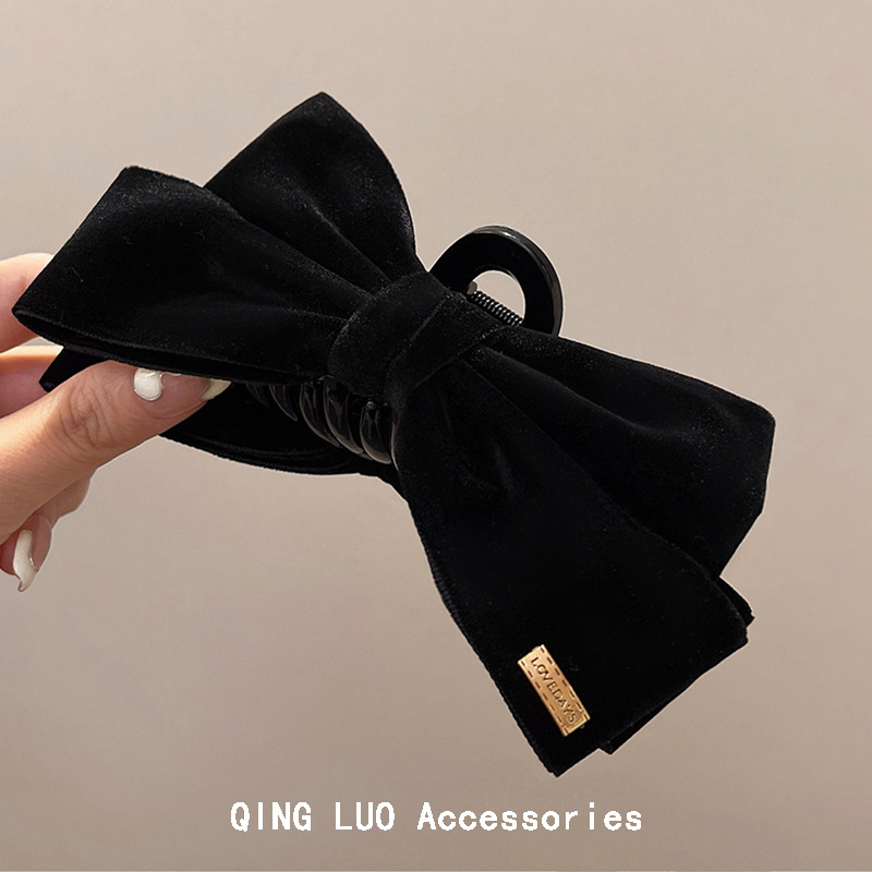 gold label black velvet bow claw clip