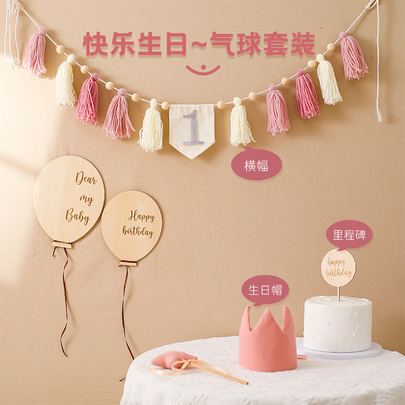 baby birthday hat banner suit beige