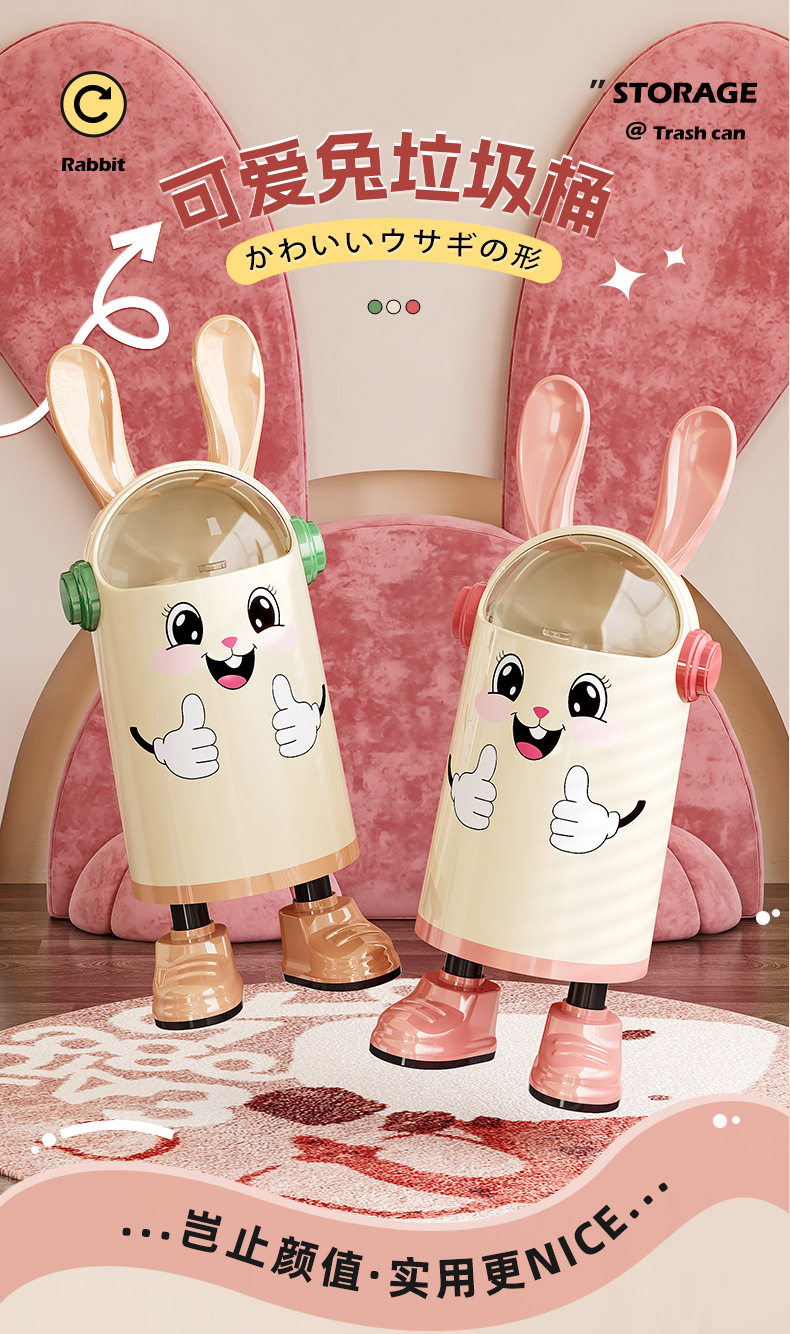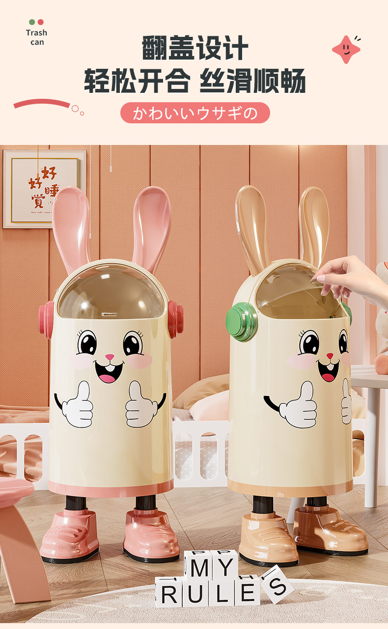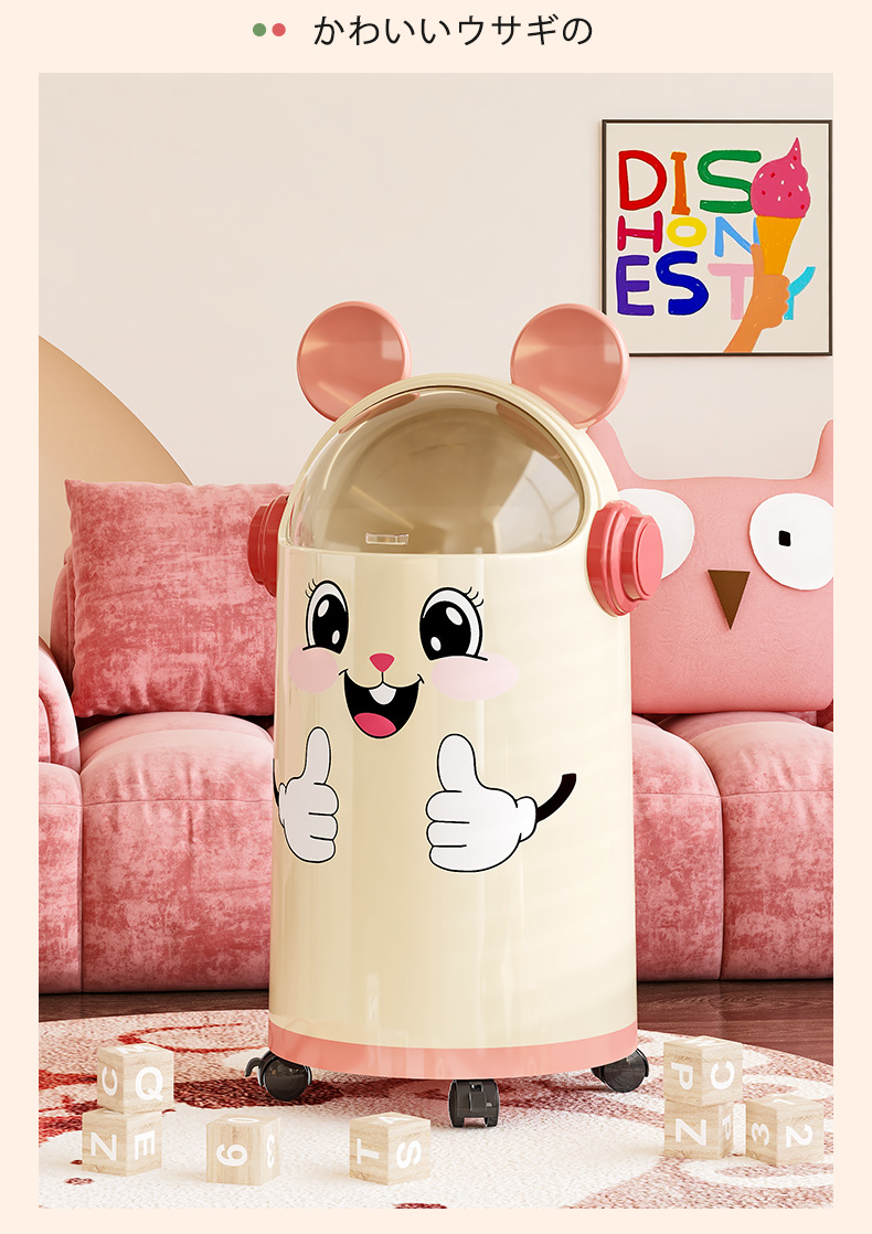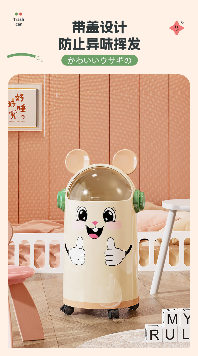 Wholesale, Custom, Trash Can, Trash Bin, Fun, Niche, Cute, Interesting, Simple, Round Lid, Flippable Lid, Lift-up Lid, Large Capacity, Large Size, Cream Color, Heart Emoji, Gift