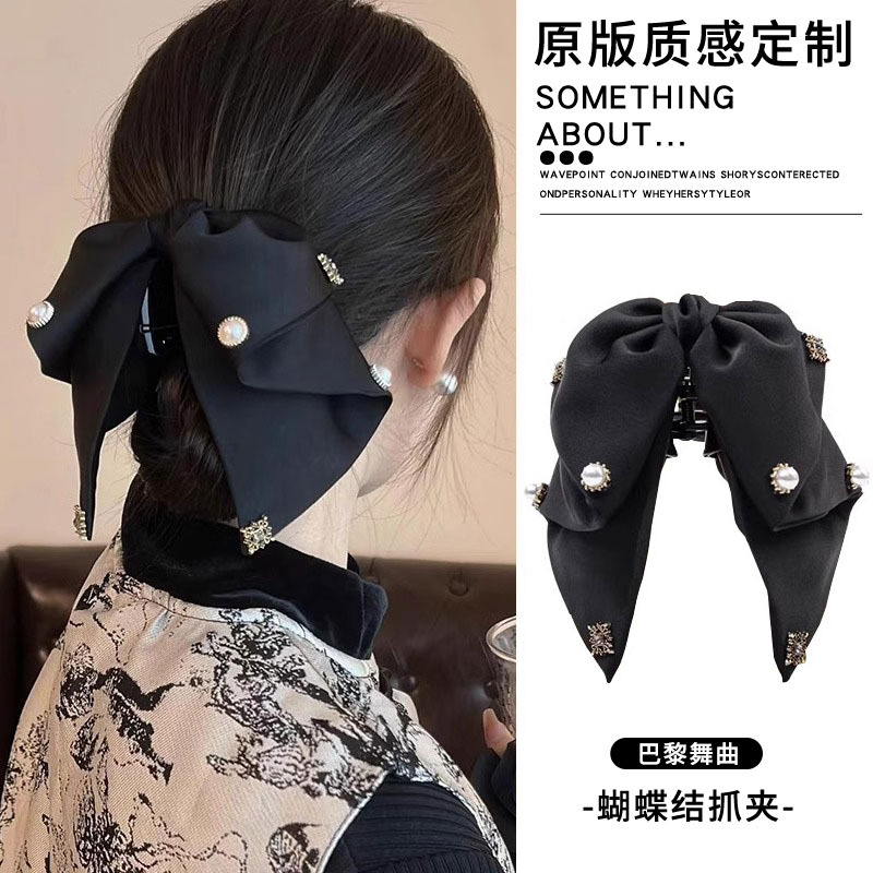 2# black vintage satin bow claw clip