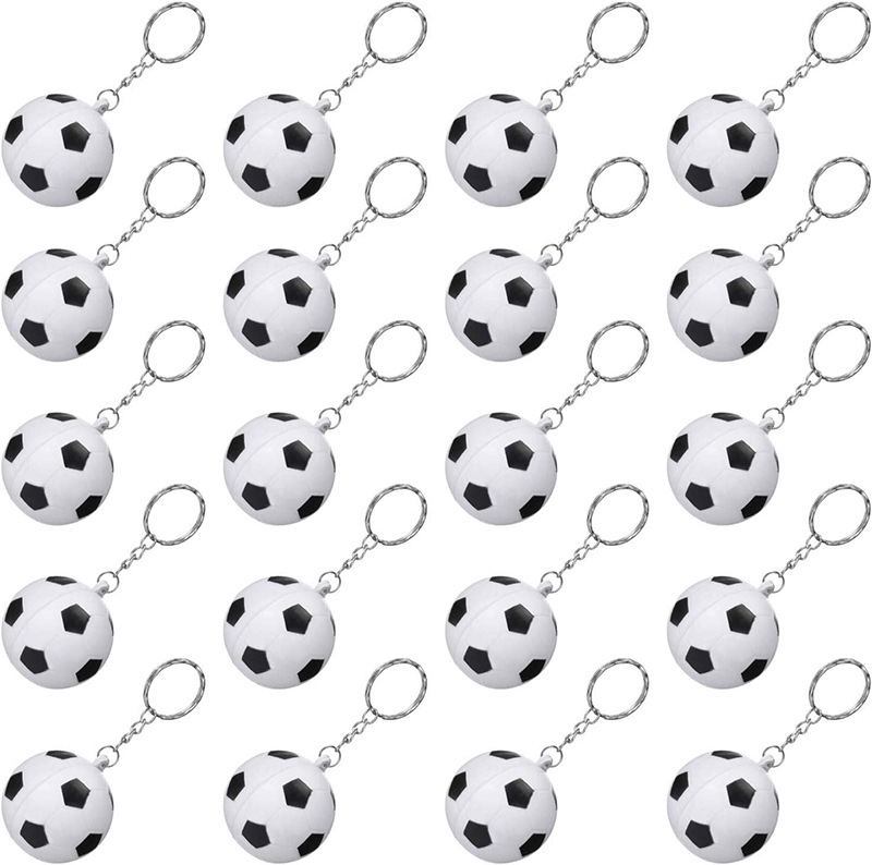 White football keychains are in stock, while others need to be custom-made.