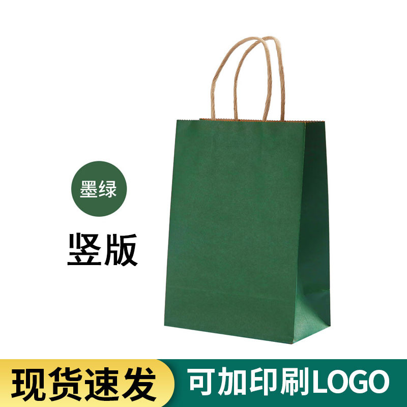 full-version dark green portable paper bag; large vertical handbag (26*12*33)