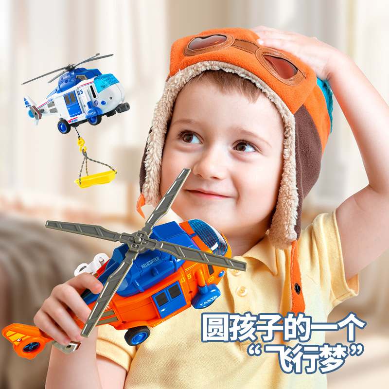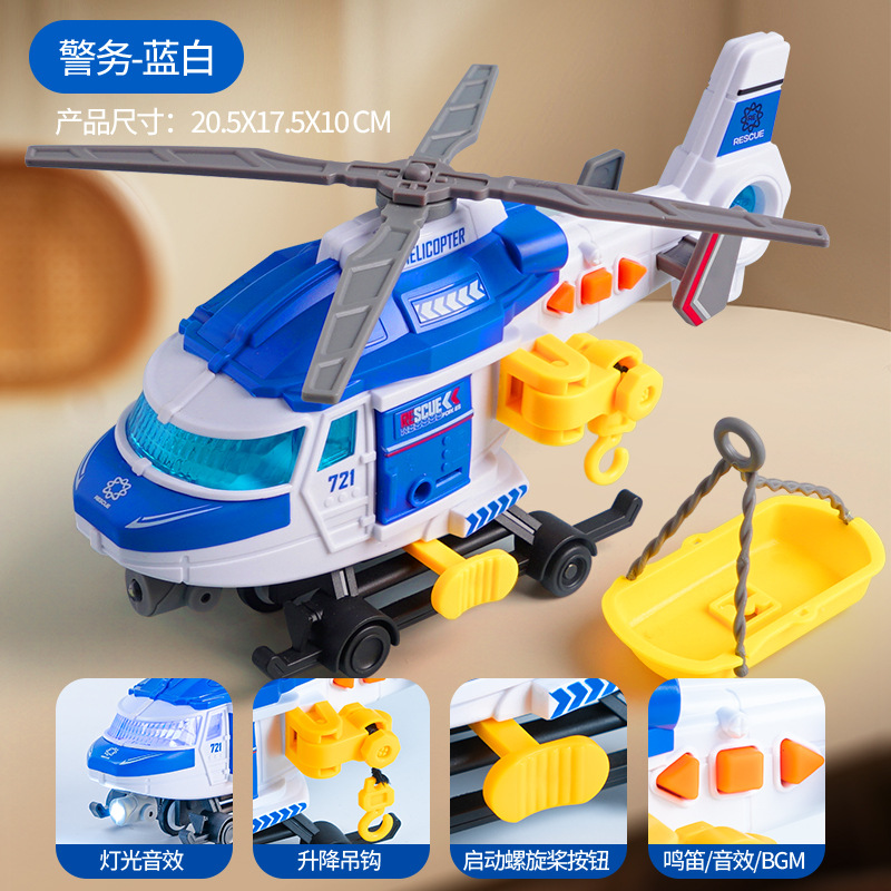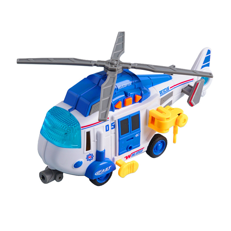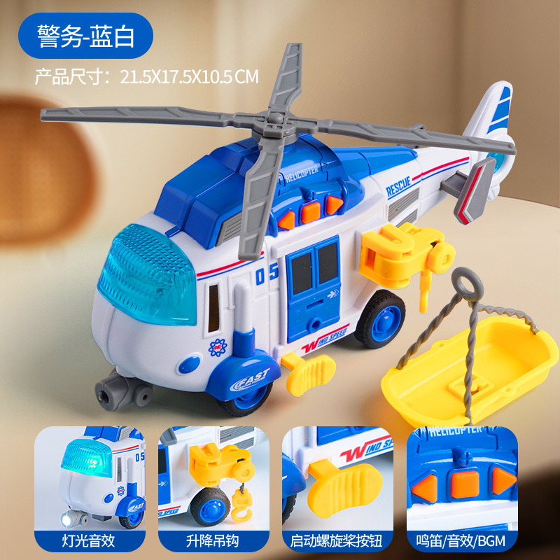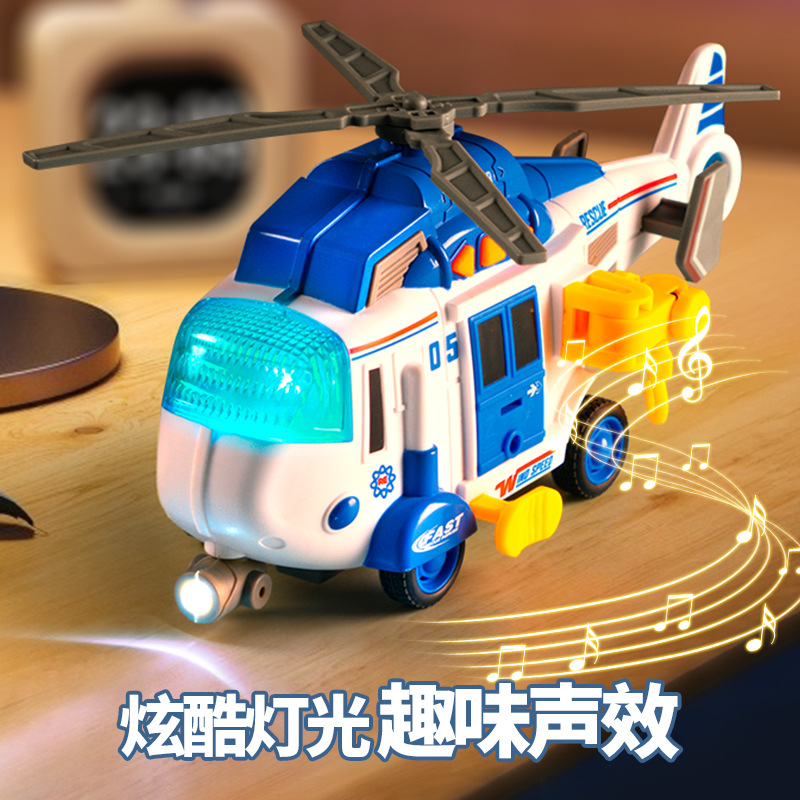 white-helicopter round (containing battery) [rotating propeller/lifting hook/with light/sound effect]]