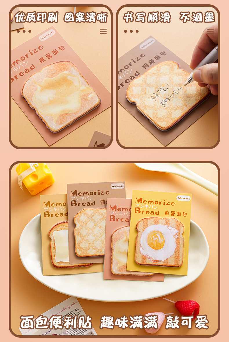 creative three-dimensional memory bread series sticky notes good-looking note paper message-leaving memo note n times sticker wholesale