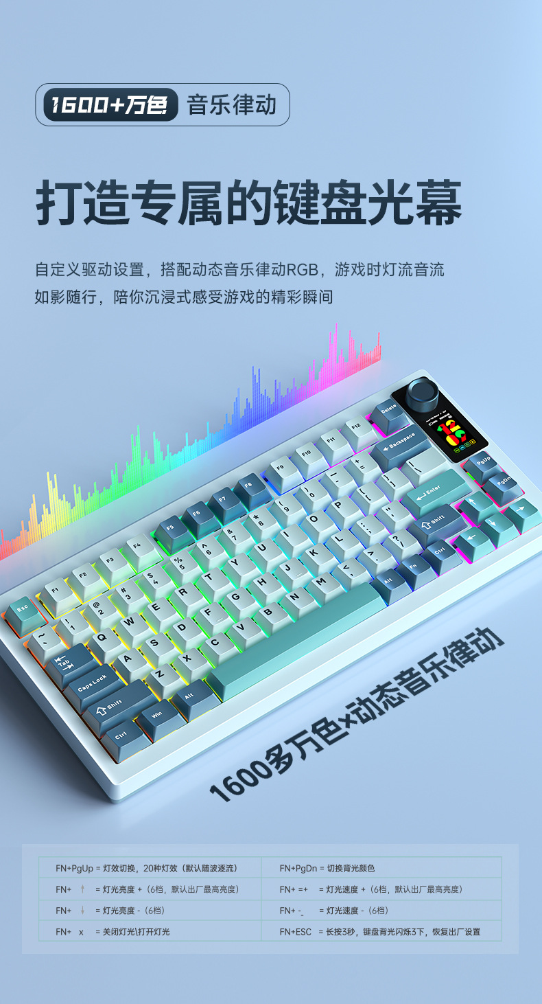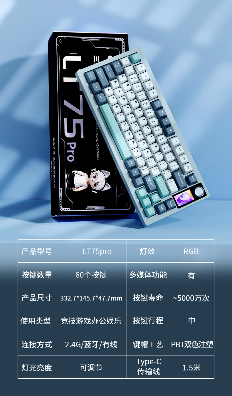 lt75 sea salt-silver jade axis [three-mode connection] lcd screen rgb light