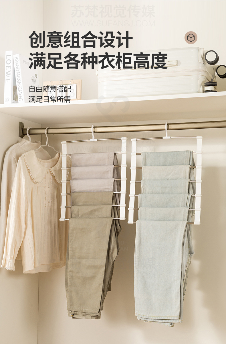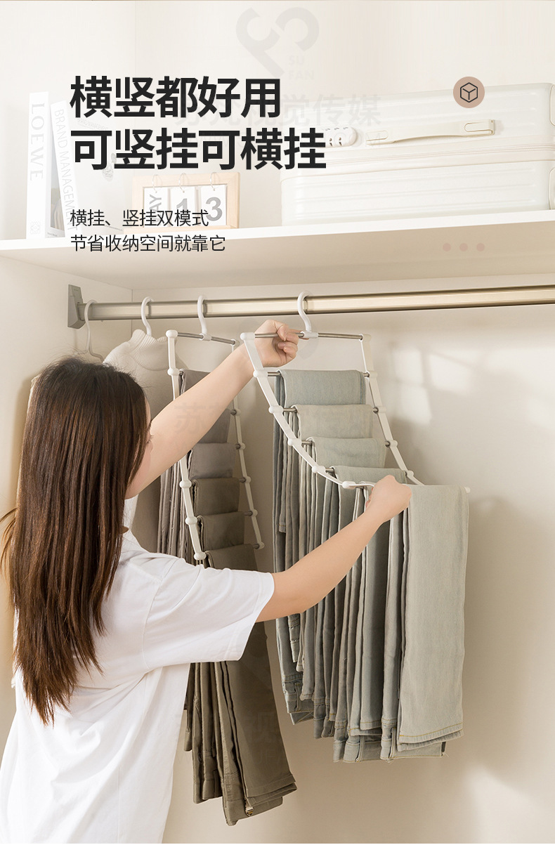 upgrade style 7 rod stainless steel ladder pant rack [paper box 2 pack]]