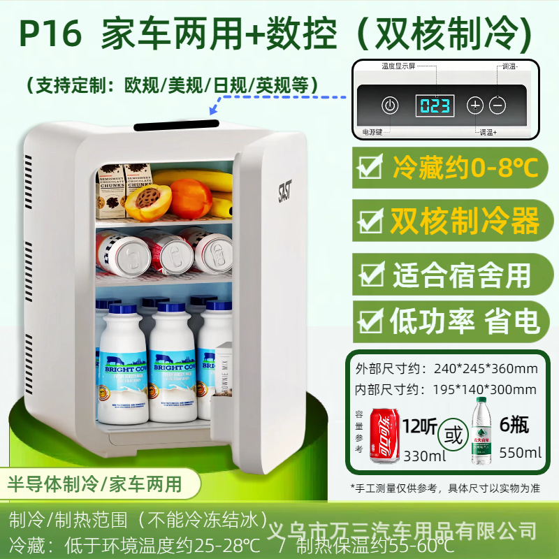 p16 white teeth + digital display temperature control [dual-core refrigeration and refrigeration 0-8 ℃] for home and car