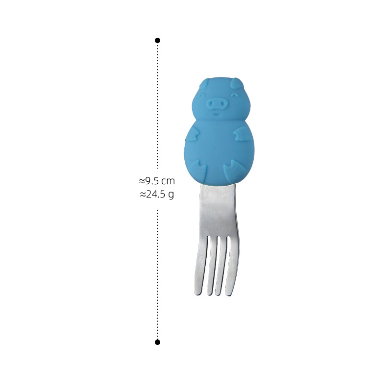 a077 pig silicone children's fork-blue