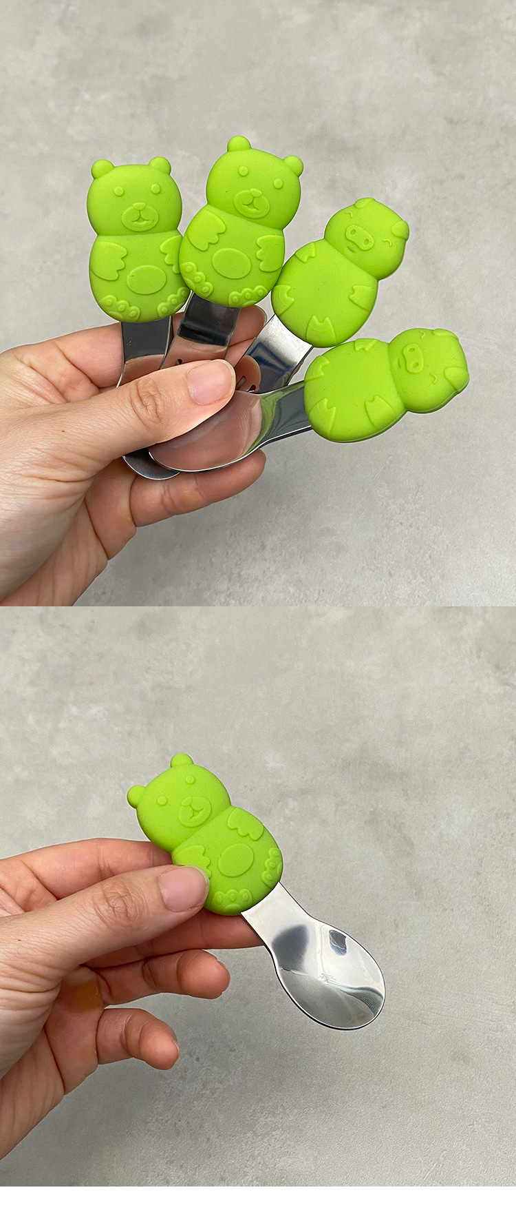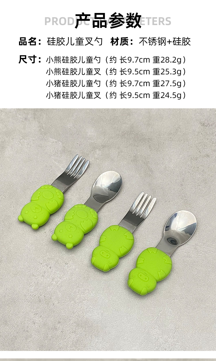 a077 little bear silicone children spoon-green