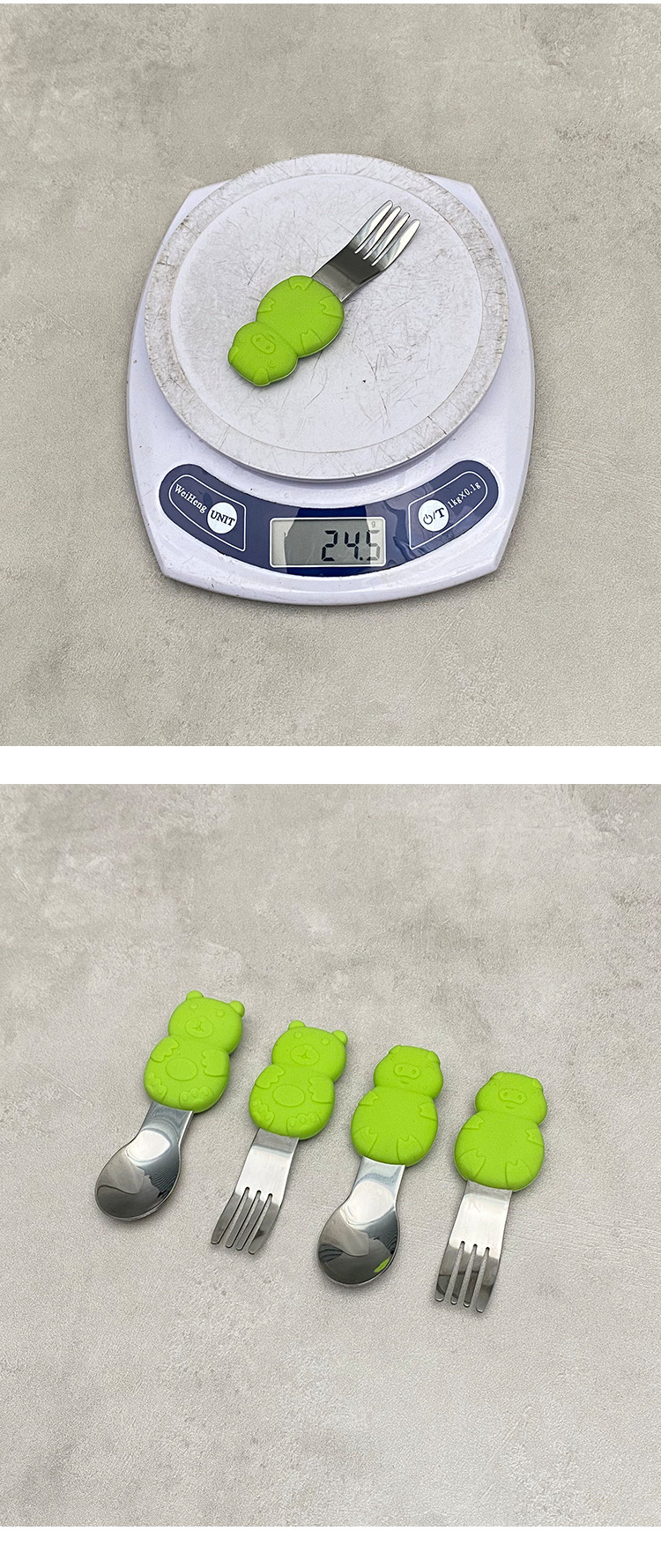 a077 little bear silicone children's fork-green