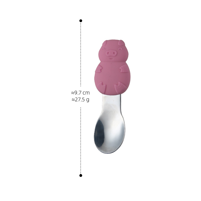 a077 pig silicone children spoon-pink