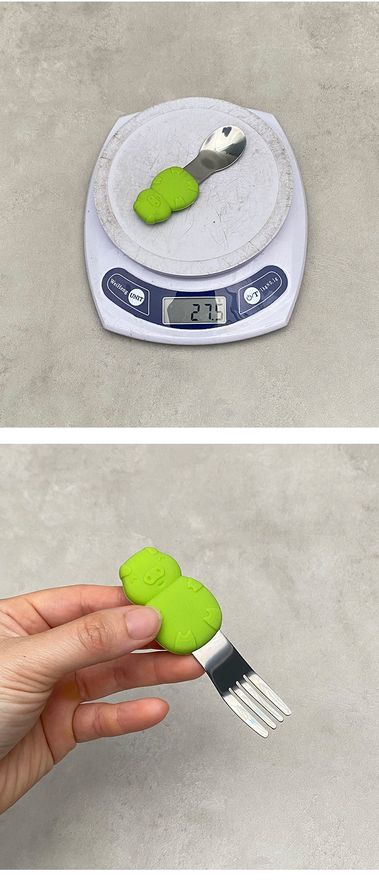 a077 pig silicone children's fork-green