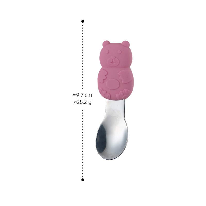 a077 bear silicone children spoon-pink