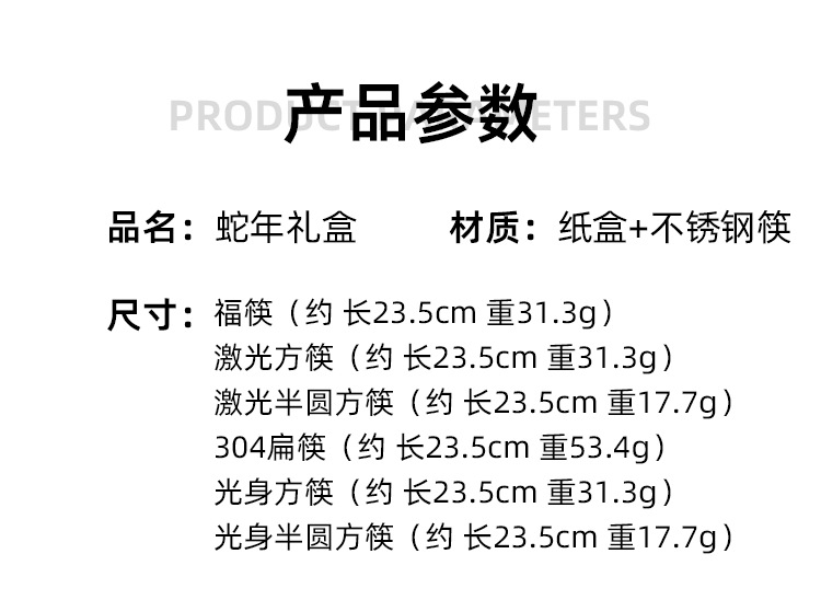 snake year gift box laser square-headed chopsticks 23.5-10 pairs [natural color]]