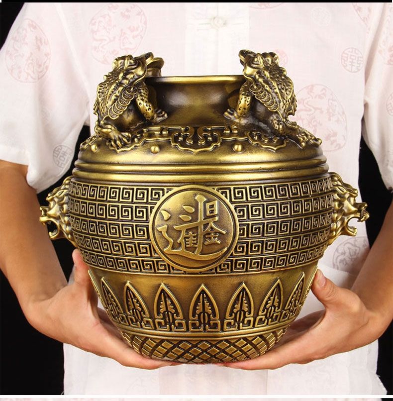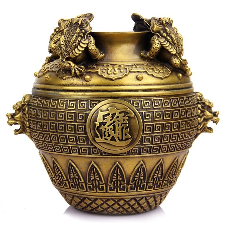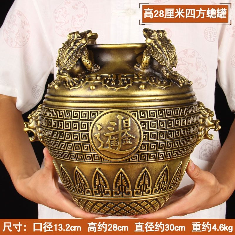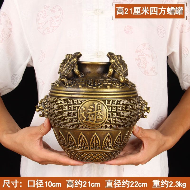 extra large brass square toad jar height about 21cm plus♜