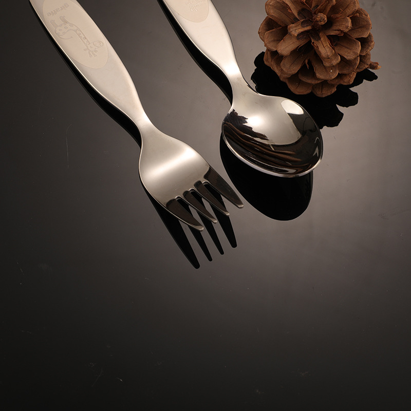 amazon cartoon spoon 304 stainless steel knife, fork and spoon small spoon baby drop-resistant suit children's tableware