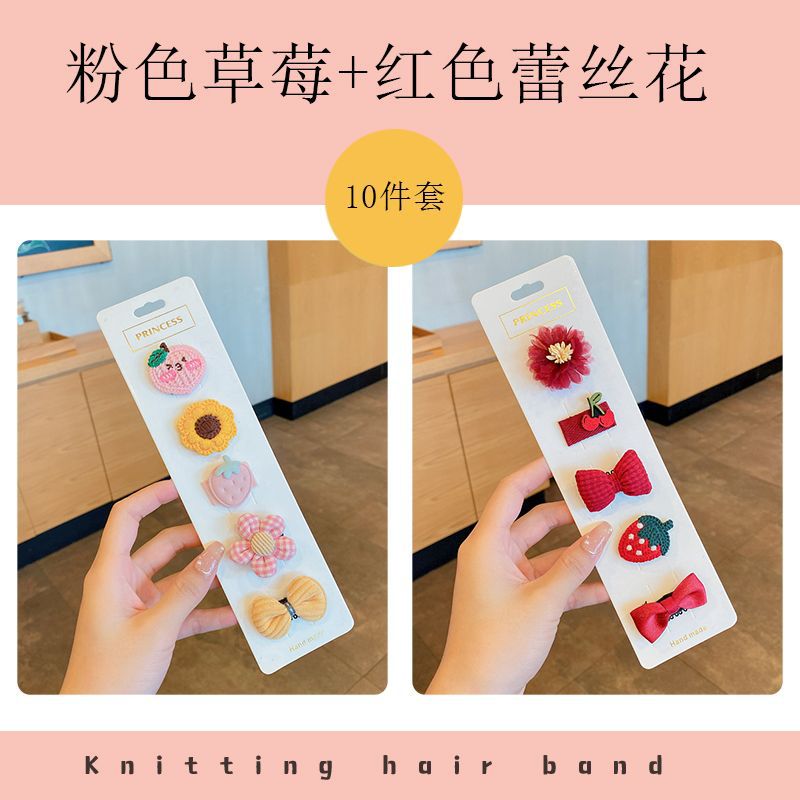 10-piece set of pink strawberry + red lace flower♜