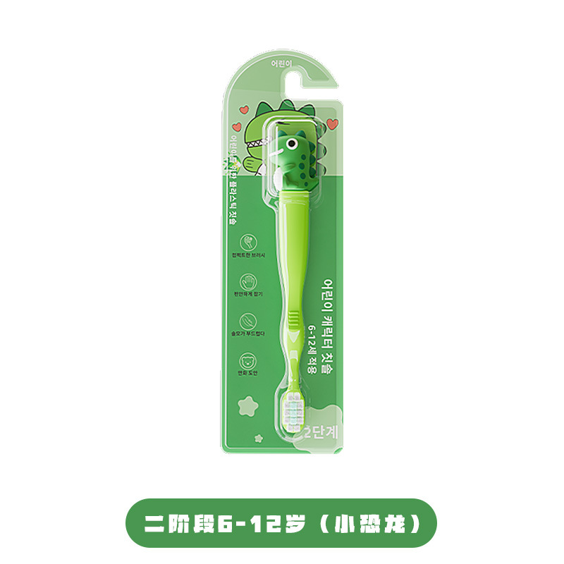 [stage 2 6-12 years old] big children cartoon toothbrush 1 pack-green little dinosaur