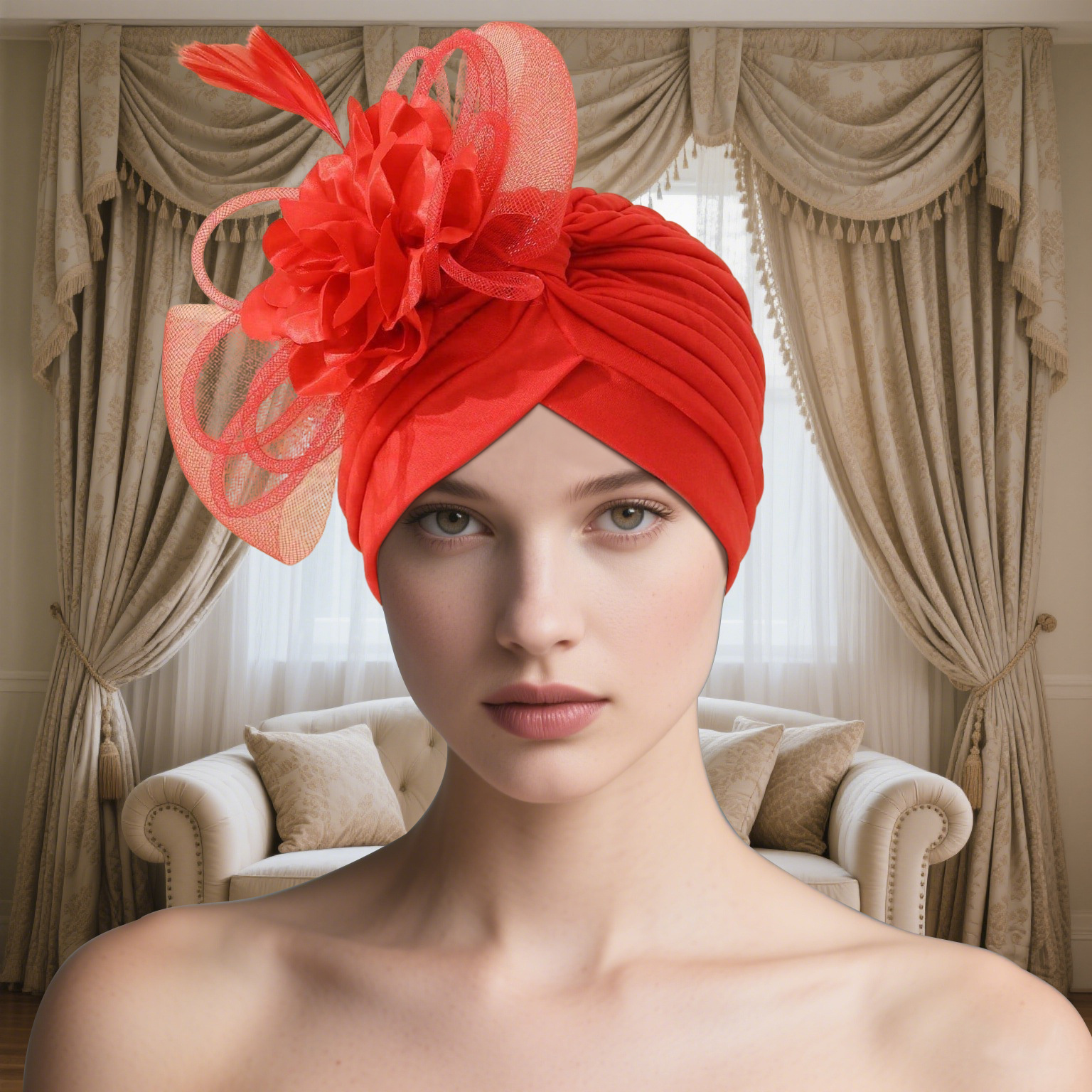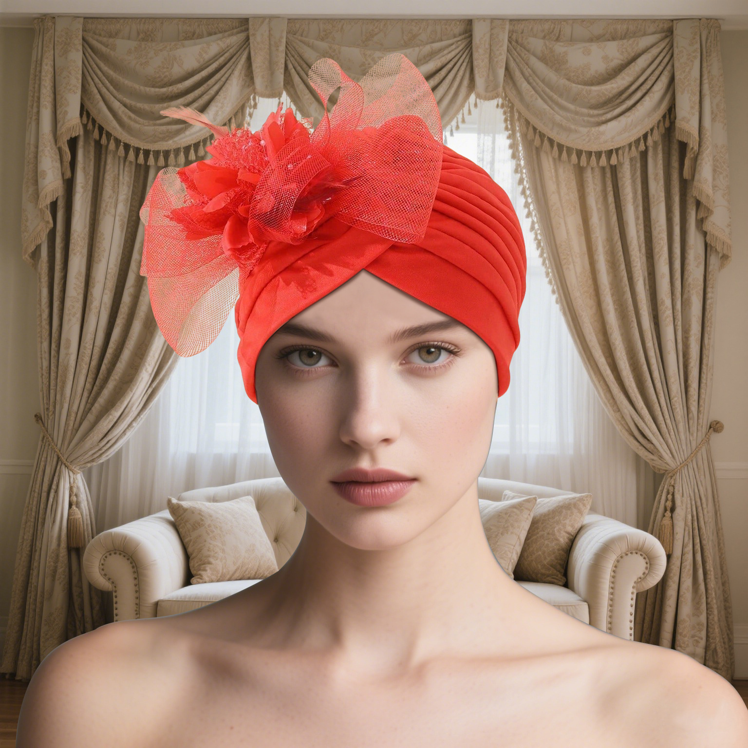 Red apple turban hat firm 9yr.