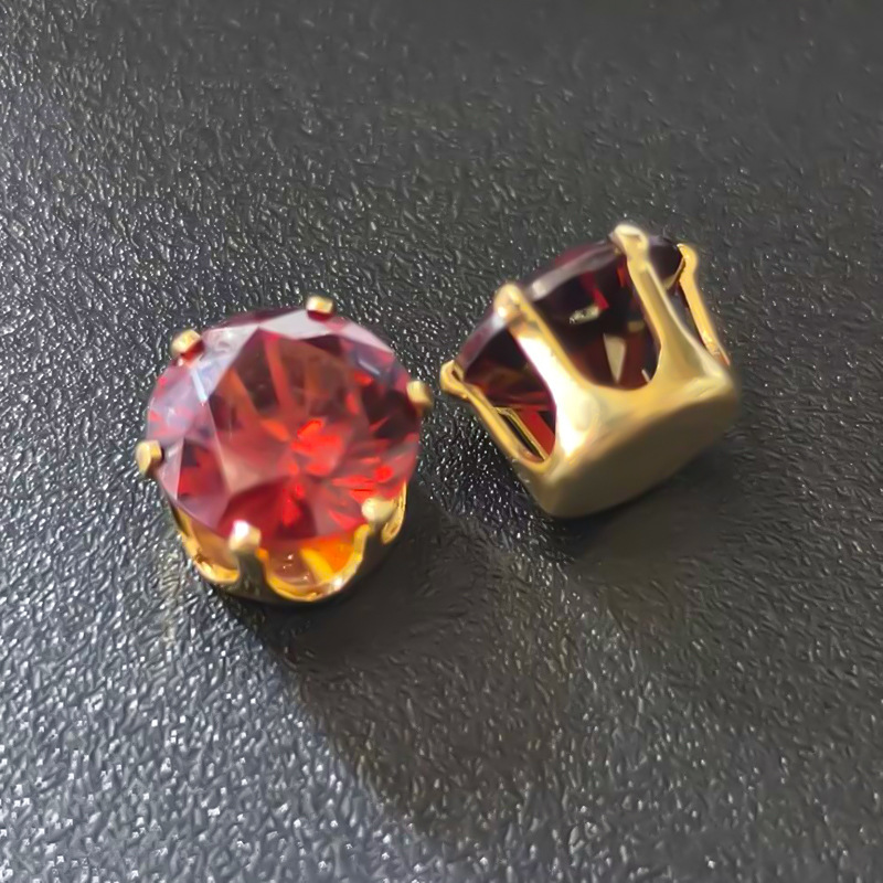 empty table round 8mm pomegranate red electroplated gold claw