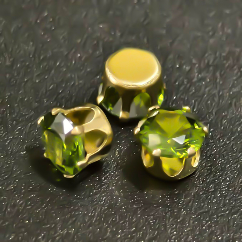 empty table round 8mm olive green plated gold claw