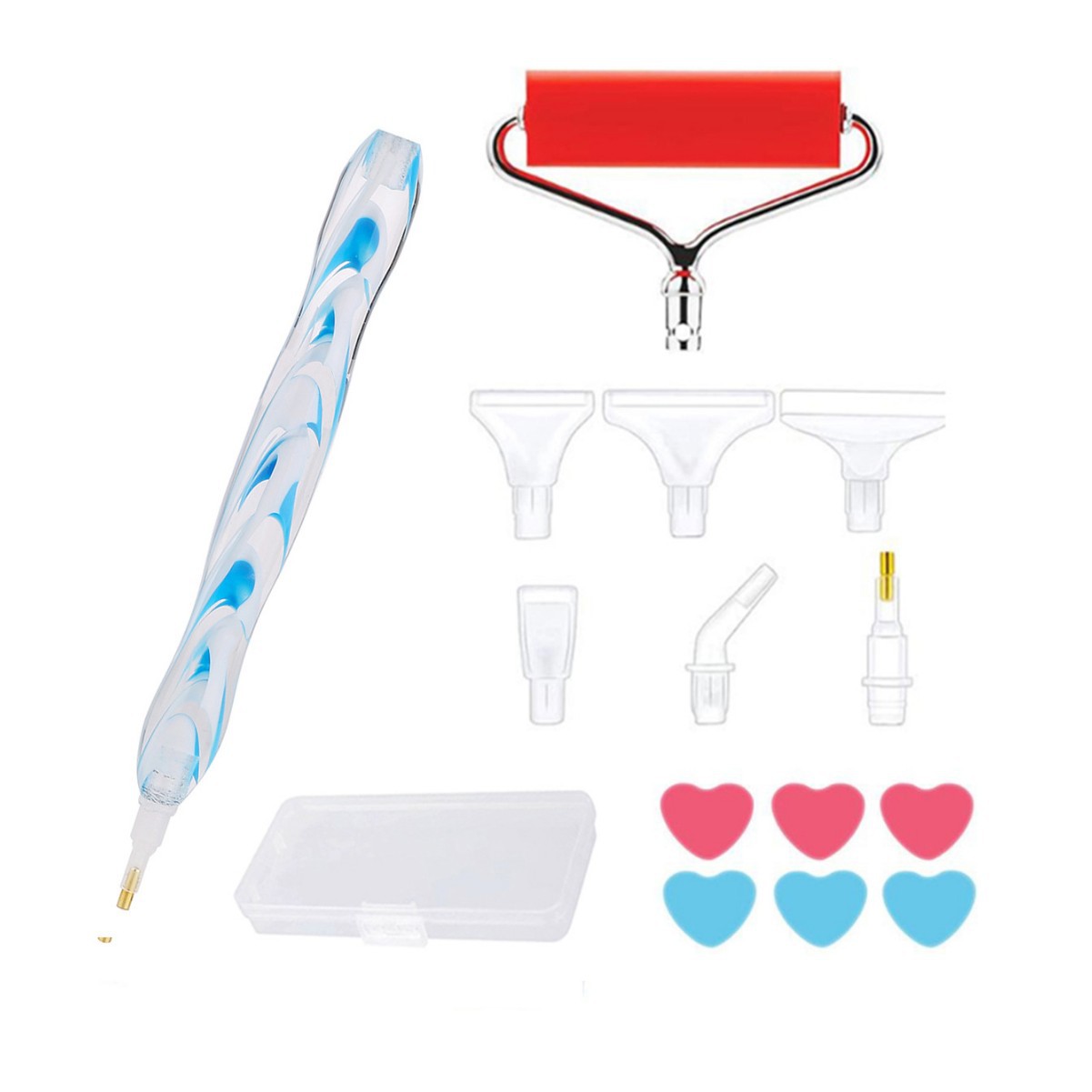 boxed blue ripple + small red roller + love 3 blue 3 red